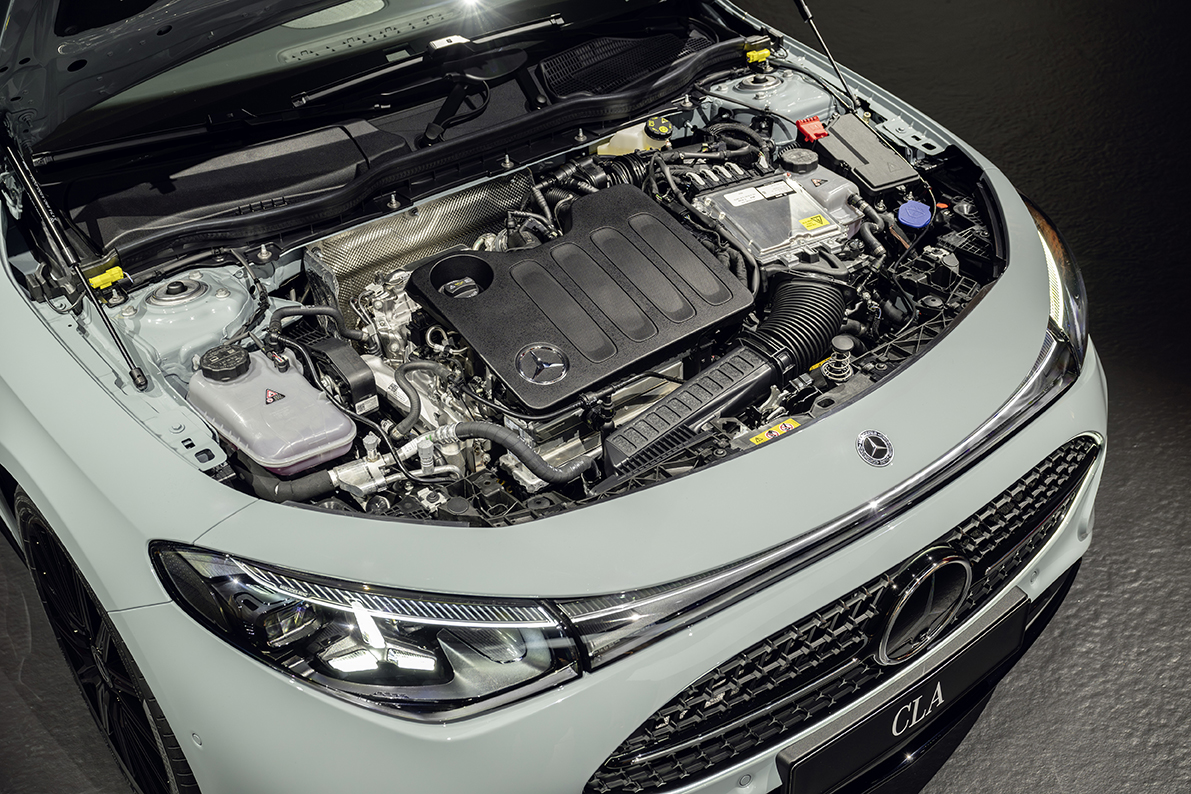 Η υβριδική CLA διατίθεται με τεχνολογία 48 volt και έναν ηλεκτροκινητήρα ενσωματωμένο στο νέο οκτατάχυτο κιβώτιο διπλού συμπλέκτη (8F-eDCT). Τροφοδοτείται από μια νέα μπαταρία λιθίου-ιόντων χωρητικότητας 1,3 kWh. Ο ηλεκτροκινητήρας παρέχει έξυπνη υποστήριξη και, σε αστικές ταχύτητες, τα υβριδικά μοντέλα μπορούν να κινούνται αποκλειστικά με ηλεκτρική ενέργεια, καθώς και να ανακτούν ενέργεια και στις οκτώ σχέσεις, επιτρέποντας αναγεννητική πέδηση έως 25 kW. Η CLA 180 είναι το πιο αποδοτικό μοντέλο Mercedes-Benz με κινητήρα εσωτερικής καύσης σε αυτή την κατηγορία, με συνδυασμένη κατανάλωση καυσίμου 5,4–4,9 λ/100 χλμ..