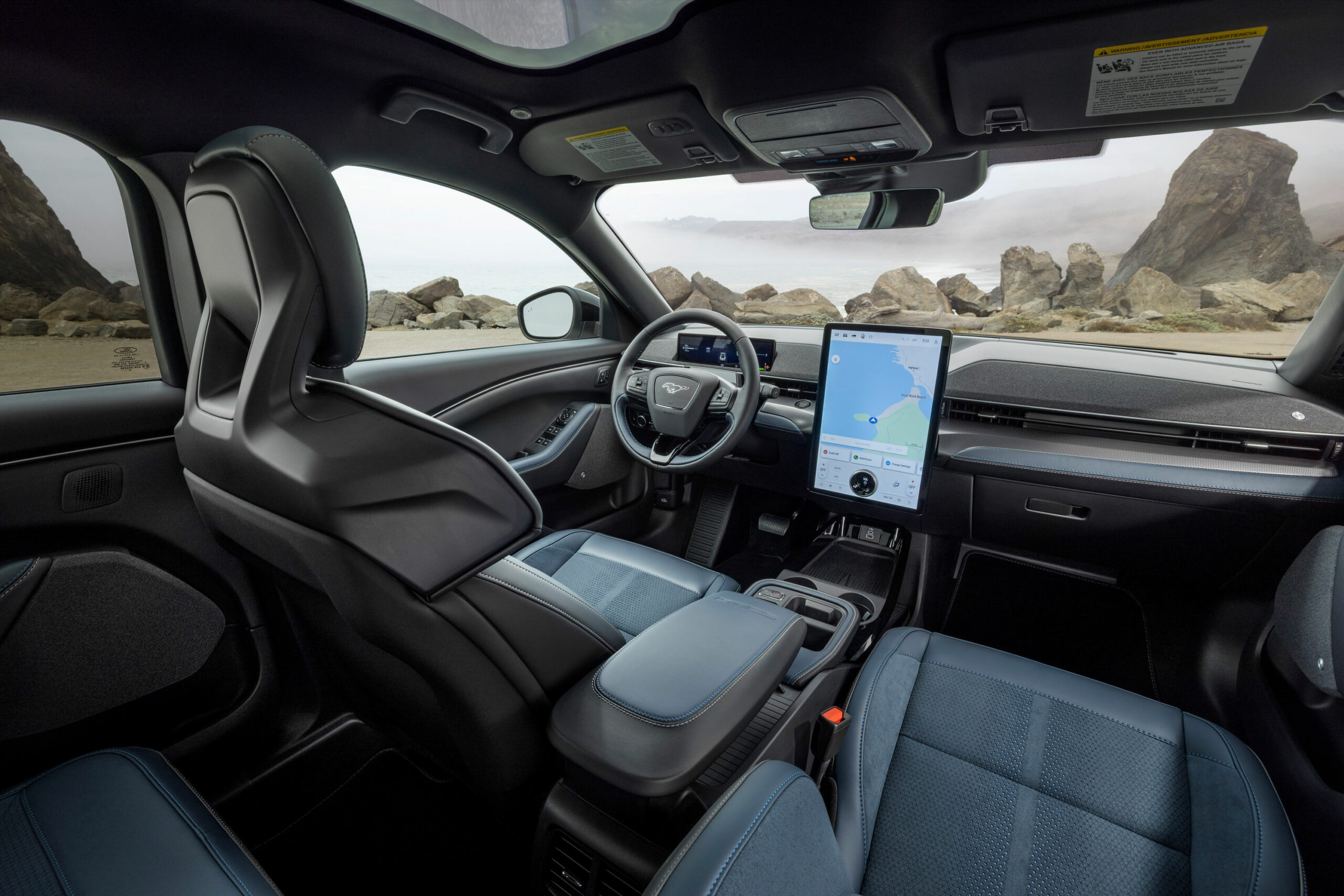 Το ίδιο ξεχωριστό είναι και το εσωτερικό της νέας Mustang Mach-E GT California Special. Τα σπορ καθίσματα υψηλών επιδόσεων είναι επενδυμένα με τα υλικά Navy Pier Active X και Miko, σε συνδυασμό με γυαλιστερές μπλε και ασημί ρίγες. Η κεντρική κονσόλα και το τιμόνι φέρουν επίσης το υλικό Navy Pier Active X, ενώ τα ασορτί πατάκια αντικατοπτρίζουν τις μπλε και ασημί λεπτομέρειες των ραφών που απαντώνται στα καθίσματα. Τιμώντας την διαδικασία σχεδιασμού των ειδικών εκδόσεων California Special, η Ford συνεχίζει να εμπνέεται από τους ανθρώπους που κατέστησαν την Mustang ένα εμβληματικό, παγκόσμιο μοντέλο. Τόσο η Keenan όσο και ο Taylor είναι ιδιοκτήτες Mustang, και τακτικά παρίστανται σε εκθέσεις αυτοκινήτων, καθώς και σε συναντήσεις ιδιοκτητών Mustang. Τα σχέδια τα οποία δημιουργούν βασίζονται τόσο στις τάσεις της εποχής, όσο και στους ευφάνταστους τρόπους με τους οποίους οι ιδιοκτήτες Mustang εξατομικεύουν τα αυτοκίνητά τους. Χαρακτηριστικό είναι το γεγονός ότι οι ζάντες Rave Blue της Mustang Mach-E California Special είναι εμπνευσμένες από οχήματα που εκτίθενται στην Έκθεση SEMA στο Λας Βέγκας. Η νέα Ford Mustang Mach-E GT California Special προσφέρει τα καλύτερα δύο διαφορετικών κόσμων – προηγμένες ηλεκτρικές επιδόσεις και στοιχεία σχεδίασης εμπνευσμένα από την αμερικανική κληρονομιά της μάρκας.