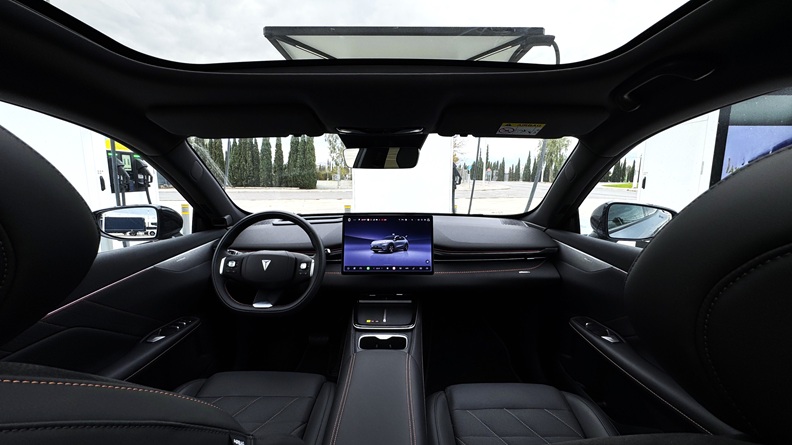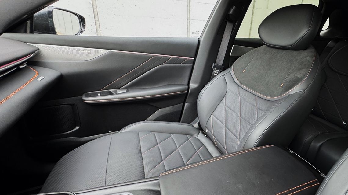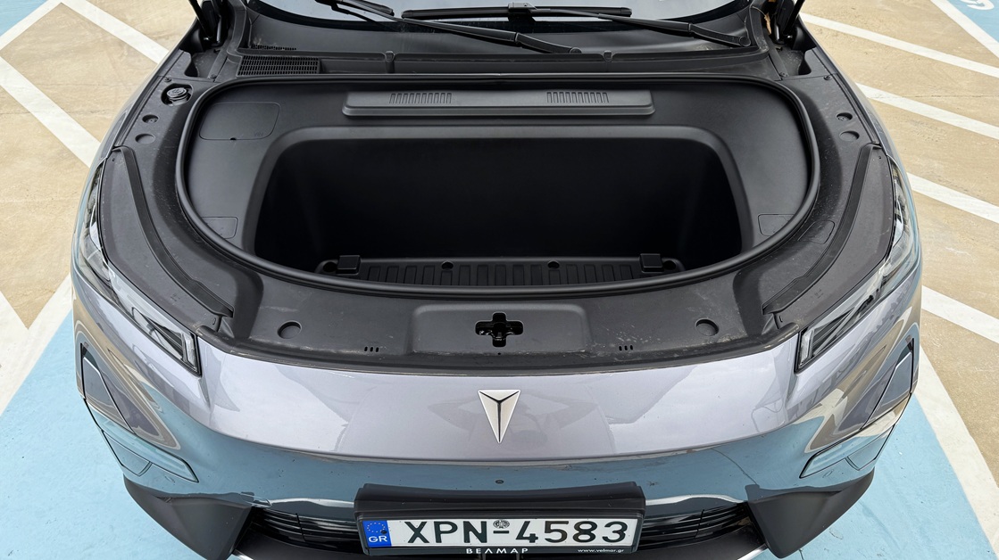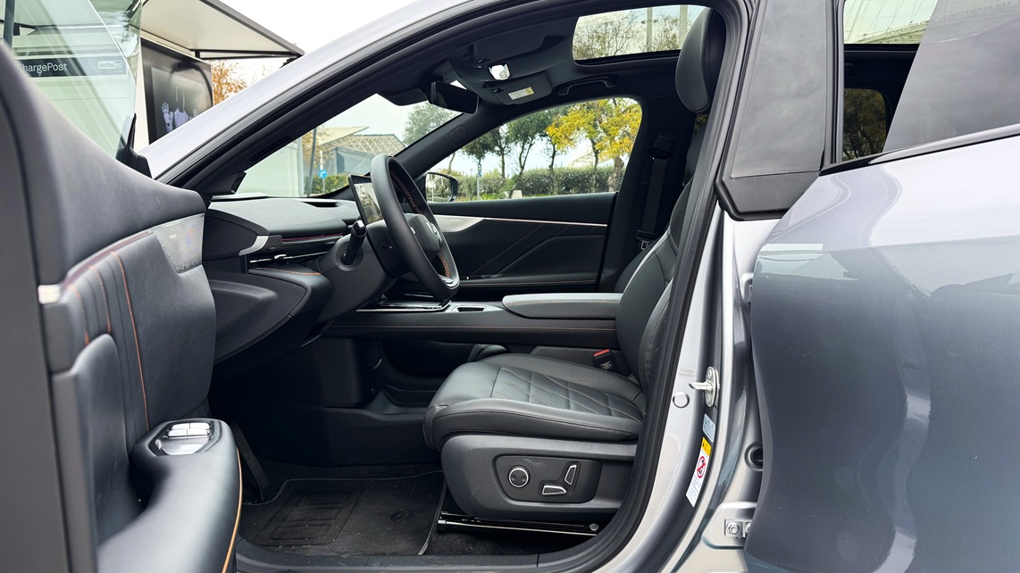 Τα καθίσματα είναι θερμαινόμενα και ψυχόμενα. Το κάθισμα του συνοδηγού διαθέτει ηλεκτρική ρύθμιση που σηκώνει το κάτω μέρος των ποδιών, μετατρέποντάς το σε μια σχεδόν «ξαπλωτή» θέση. Ιδανικό για μεγάλα ταξίδια ή στάσεις φόρτισης. Το ασύρματο Apple CarPlay και Android Auto λειτουργούν απροβλημάτιστα, ενώ ο φωνητικός έλεγχος, το head-up display, ο ατμοσφαιρικός φωτισμός και η πανοραμική οροφή ενισχύουν το αίσθημα πολυτέλειας. Οι χώροι είναι άνετοι και ο χώρος αποσκευών προσφέρει 492lt, που φτάνουν τα 1.250lt με αναδίπλωση των πίσω καθισμάτων, συν 159lt χώρο αποσκευών μπροστά.