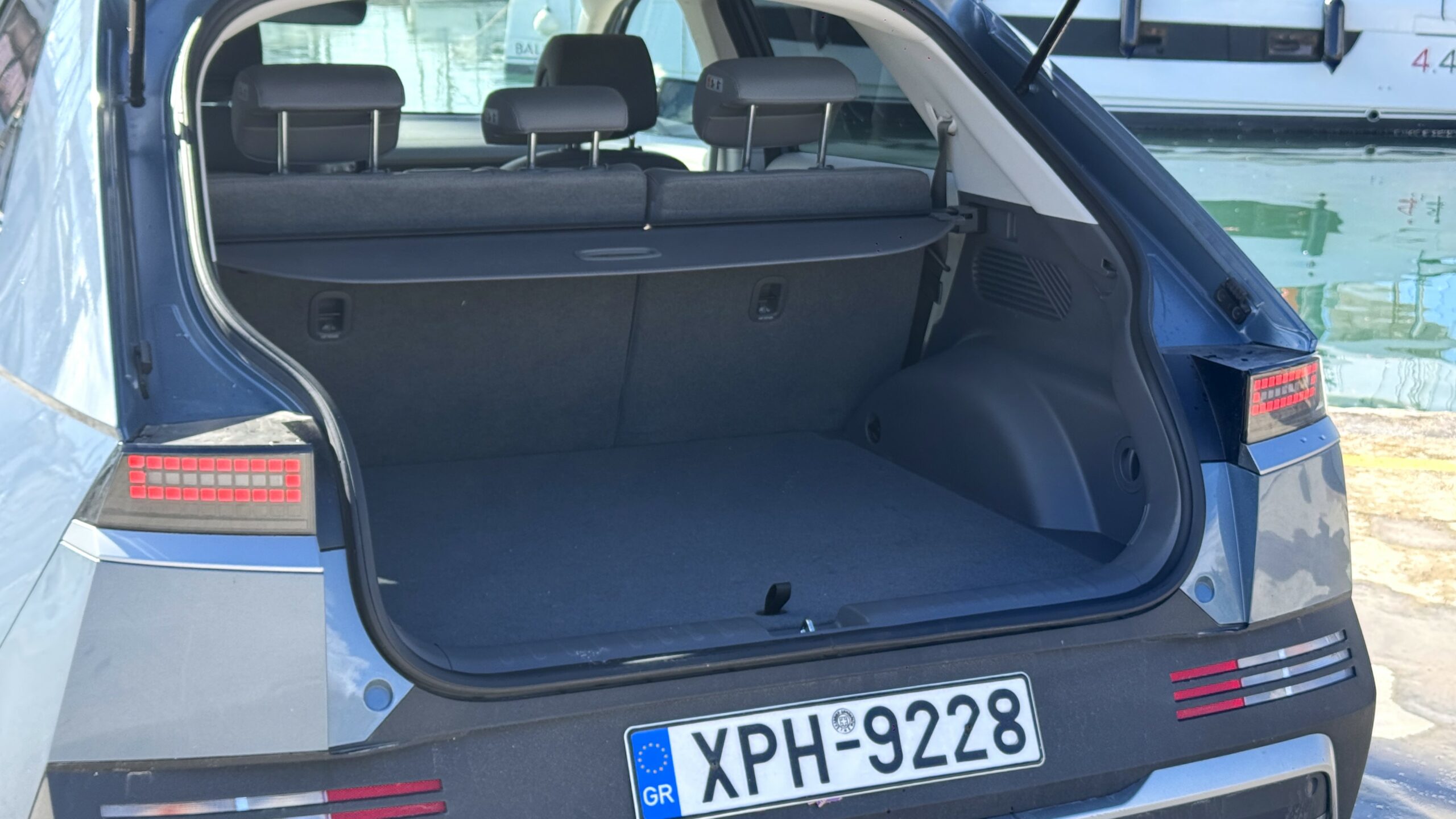 Ταυτόχρονα η εκμετάλλευση των χώρων είναι για σεμινάριο. Οι τροχοί είναι ακροβολισμένοι, δεν υπάρχει τούνελ μετάδοσης και ρυθμίζοντας το κάθισμα του οδηγού στα μέτρα μου (1.85cm, 100kg) κάθισα σταυροπόδι πίσω του. Το μεταξόνιο των 3.000 mm είναι μεγαλύτερο ακόμα και από πολλά μεγάλα SUV. Αυτό μεταφράζεται σε κορυφαίο χώρο για τα γόνατα των πίσω επιβατών, οι οποίοι μπορούν να κάθονται με άνεση ακόμα και αν είναι πολύ εύσωμοι. Η απουσία τούνελ μετάδοσης (καθώς πρόκειται για αμιγώς ηλεκτρικό) δημιουργεί ένα εντελώς επίπεδο δάπεδο. Αυτό επιτρέπει στον μεσαίο επιβάτη πίσω να κάθεται χωρίς περιορισμούς, ενώ προσφέρει μια αίσθηση “σαλονιού” στην καμπίνα. Η κεντρική κονσόλα ανάμεσα στους εμπρός επιβάτες μπορεί να μετακινηθεί μπρος-πίσω, επιτρέποντας στους επιβάτες να εξέρχονται πιο εύκολα από την άλλη πλευρά αν το αυτοκίνητο είναι παρκαρισμένο στενά, ή δημιουργώντας περισσότερο χώρο για τους πίσω.