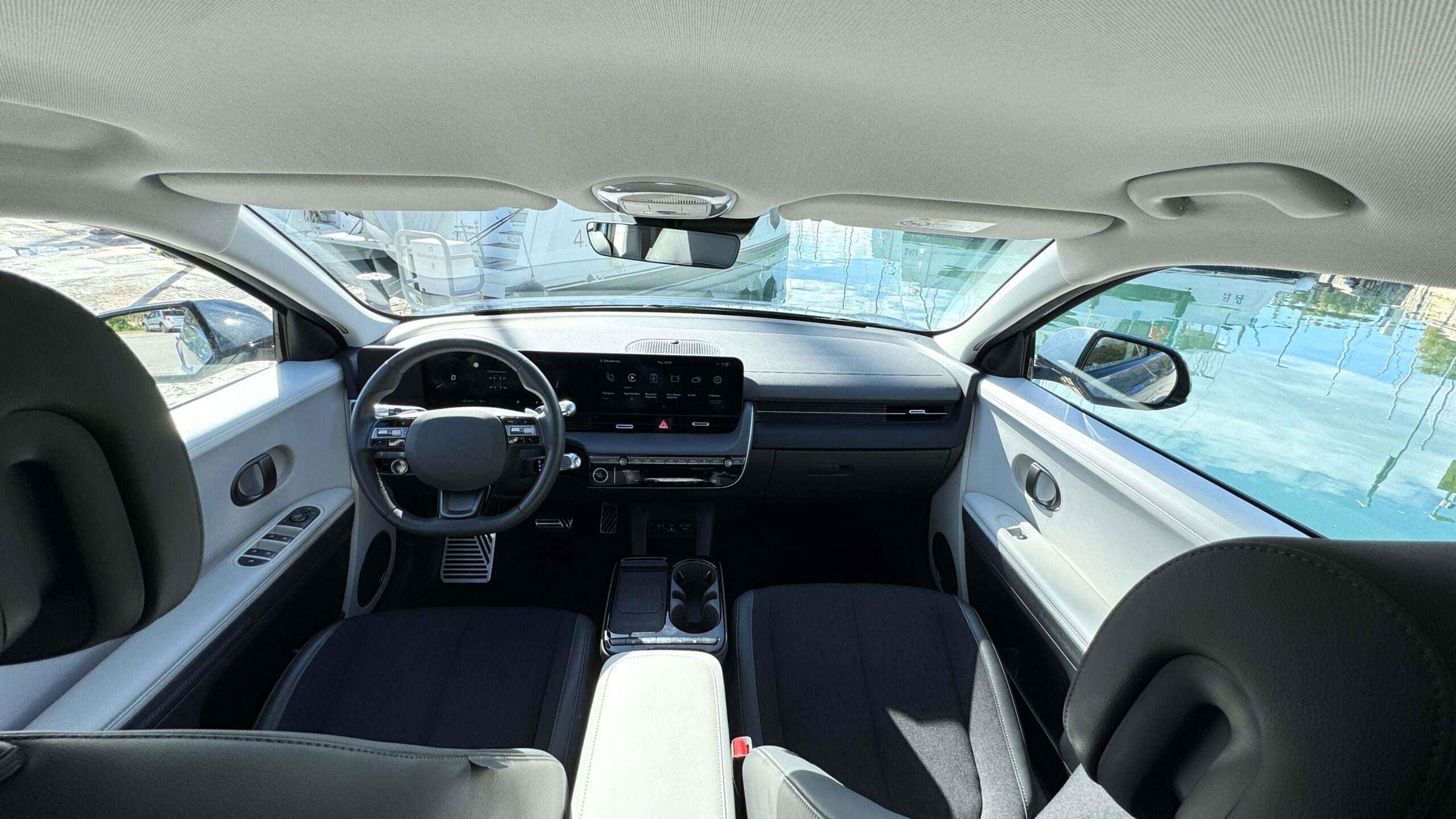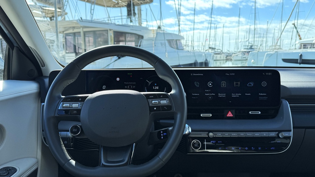 Στην καμπίνα, η Hyundai αφουγκράστηκε τους πελάτες της και προχώρησε σε ουσιαστικές αλλαγές. Η κεντρική κονσόλα έχει πλέον περισσότερα φυσικά κουμπιά για άμεση πρόσβαση σε λειτουργίες, βελτιώνοντας την εργονομία. Οι δύο οθόνες των 12,3″ διαθέτουν νέα επιφάνεια επαφής με καλύτερη απόκριση και ευκρίνεια.