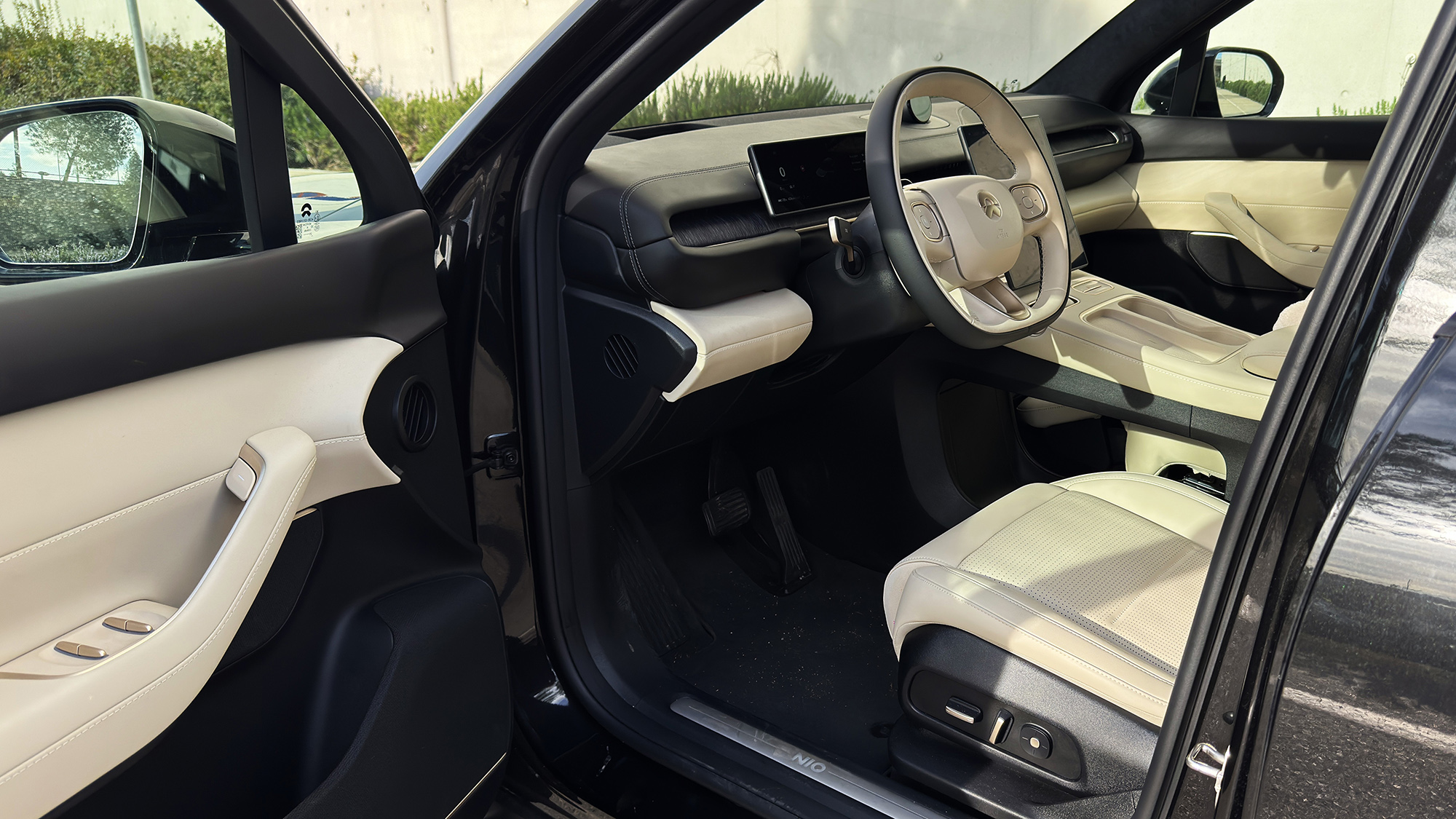 Εκεί που γίνεται το «παιχνίδι». Ανοίγοντας την πόρτα, η οποία κλείνει με λειτουργία soft close (απαλό κλείσιμο) αντιλαμβάνεσαι αμέσως ότι το NIO EL6 αντιμετωπίζει το εσωτερικό σαν χώρο φιλοξενίας και όχι απλώς σαν καμπίνα αυτοκινήτου. Η αίσθηση άνεσης, θαλπωρής και ασφάλειας είναι διάχυτη, με υλικά που δείχνουν και είναι ποιοτικά σε κάθε επιφάνεια.