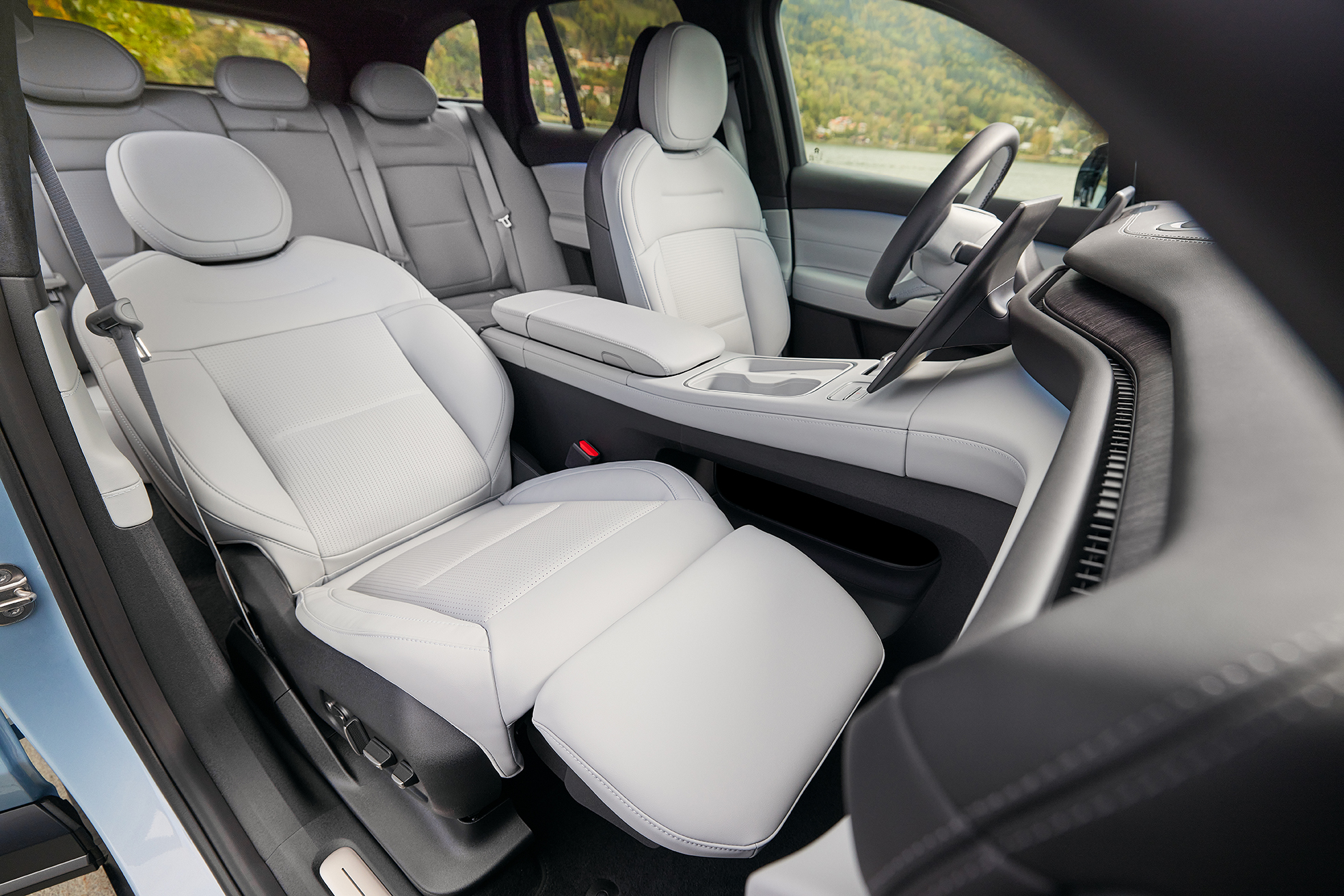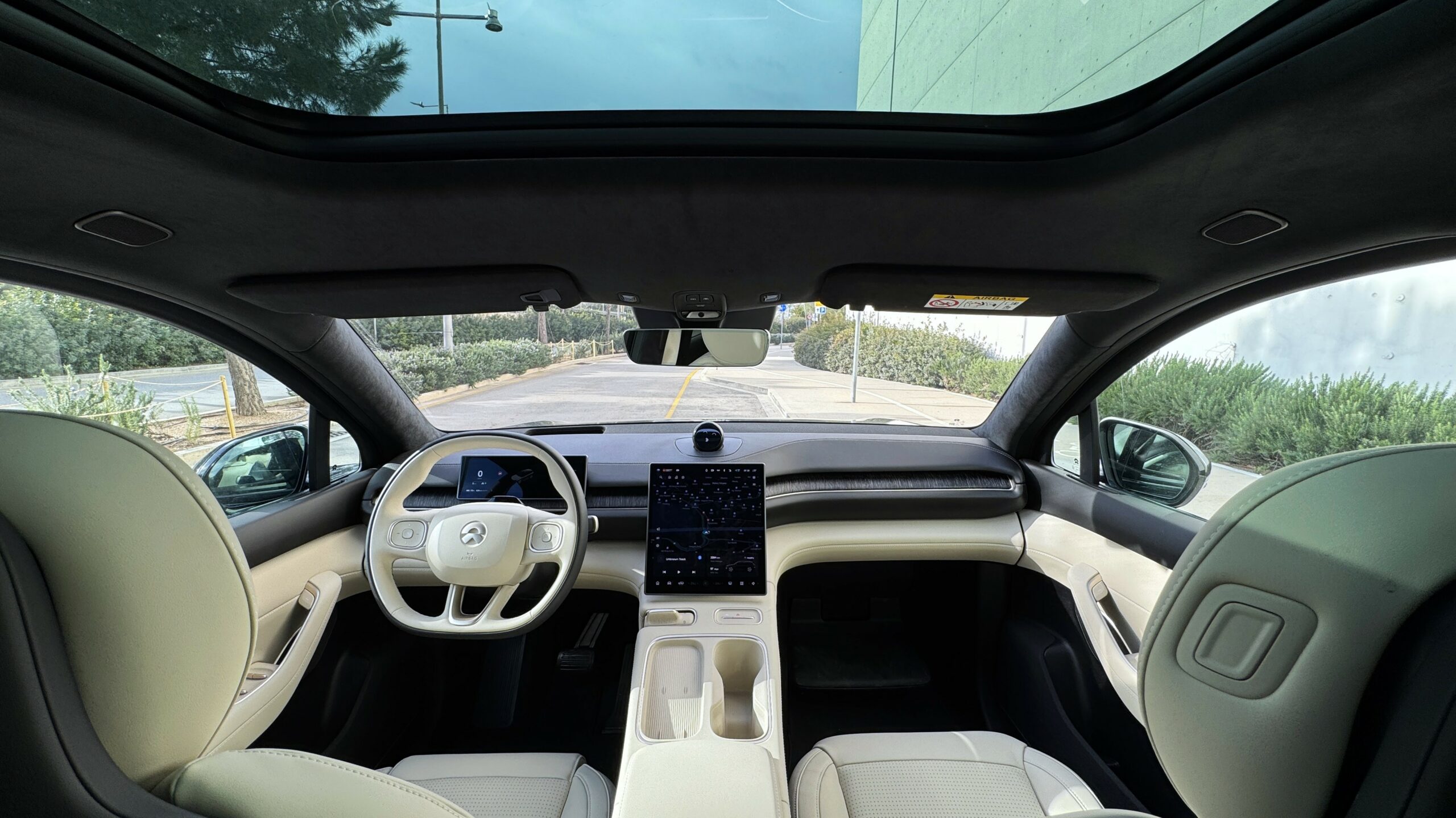 Οι χώροι είναι άφθονοι παντού, η πανοραμική οροφή πλημμυρίζει το εσωτερικό με φως, ενώ ο χώρος αποσκευών φτάνει τα 668 λίτρα ή τα 1.430 λίτρα με αναδίπλωση. Το κάθισμα του συνοδηγού γίνεται ανάκλιντρο: ζητάς από τη NOMI χαλαρωτική μουσική και εικόνα τζακιού στην οθόνη και απολαμβάνεις τον ουρανό όσο φορτίζεις. Ναι, τόσο απλά.