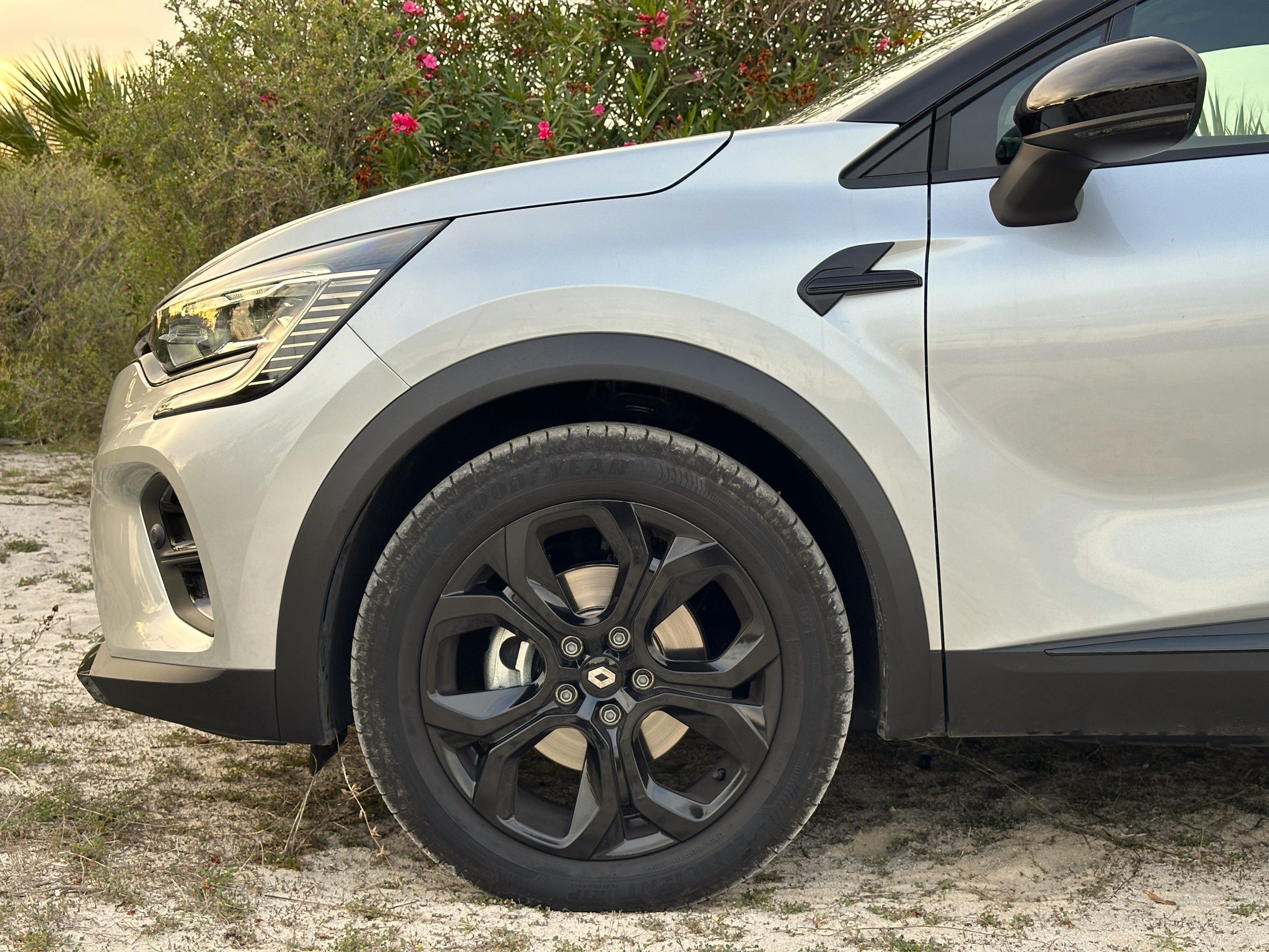 Οι σχεδιαστές του Captur θέλησαν να μαγνητίζει τα βλέμματα στο πέρασμά του και το κατάφεραν με έντονες και πολυάριθμες καμπύλες, σμιλευμένα φτερά, προστατευτικές ποδιές, φαρδιά επιβλητική μάσκα με εκφραστικό εμπρός προφυλακτήρα και φώτα led σε σχήμα C δίνοντας όγκο και χαρακτήρα, μπάρες οροφής, λεπτομέρειες με διακοσμητικά μαύρου χρώματος (στο αυτοκίνητο της δοκιμής μας) ή χρωμίου ανάλογα την έκδοση. Ζάντες αλουμινίου 18’’ και καθρέπτες σε μαύρο χρώμα για να ταιριάζουν με την διχρωμία. Το Captur από τα παράθυρα μέχρι και την οροφή είναι βαμμένο μαύρο, έτσι φαντάζει πιο μοντέρνο στην πολυπληθή και δημοφιλή κατηγορία των B-SUV. Ιδιαίτερο χωρίς υπερβολές.