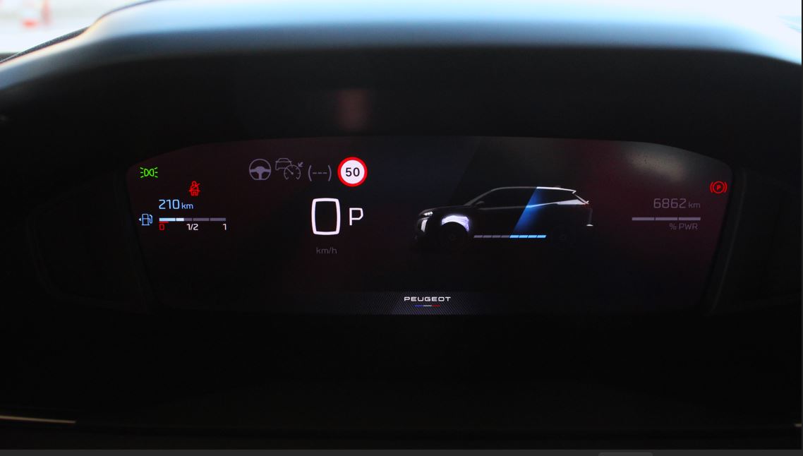 Κυριαρχεί λιτότητα, σκούρες αποχρώσεις του γκρι και μαύρου, υφασμάτινη επένδυση, τεχνολογική πανδαισία με δύο οθόνες, μία αφής 10″ στην μέση για το σύστημα ψυχαγωγίας και ασύρματη συνδεσιμότητα μέσω Apple Car play & Android Auto και έναν τρισδιάστατο ψηφιακό πίνακα οργάνων i-Cockpit 10″ για τις πληροφορίες οδήγησης-ταξιδιού πίσω από το μικρής διαμέτρου τιμόνι το οποίο και αποτελεί χαρακτηριστικό της γαλλικής εταιρίας τα τελευταία χρόνια.