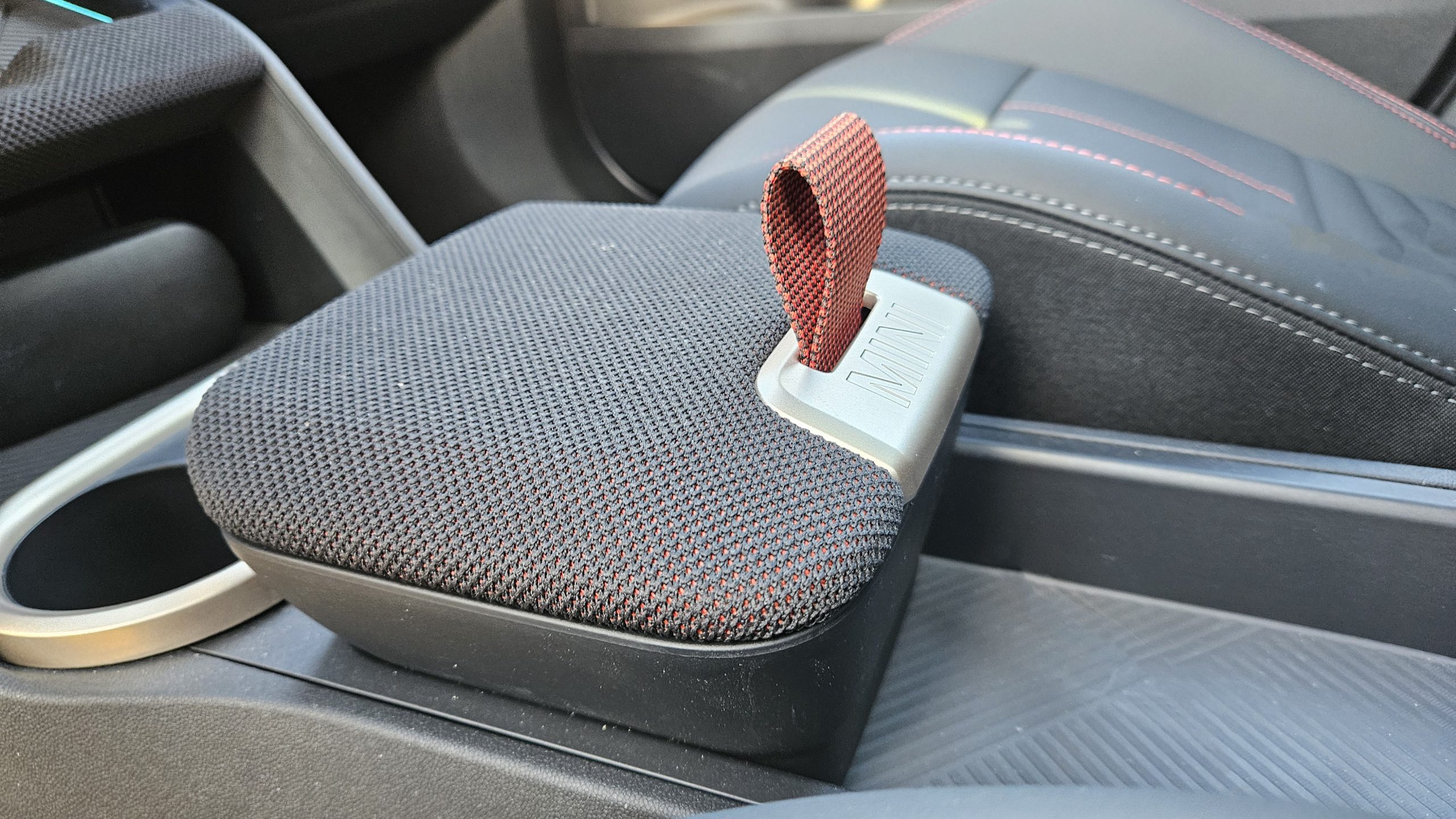 Ο χρωματικός συνδυασμός κόκκινου-μαύρου στο ταμπλό, κατά μήκος των πάνελ των θυρών και στα μπάκετ καθίσματα JCW, είναι μια αναφορά στην αγωνιστική κληρονομιά με το μεγάλο κυρτό ταμπλό να φέρει πρωτότυπο δίχρωμο ύφασμα από ανακυκλωμένο πολυεστέρα που εσωτερικά φωτίζεται εκφράζοντας και προκαλώντας συναισθήματα.