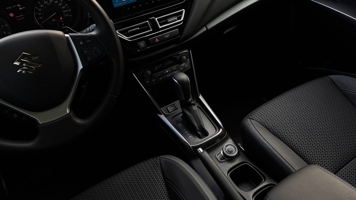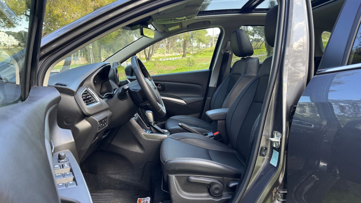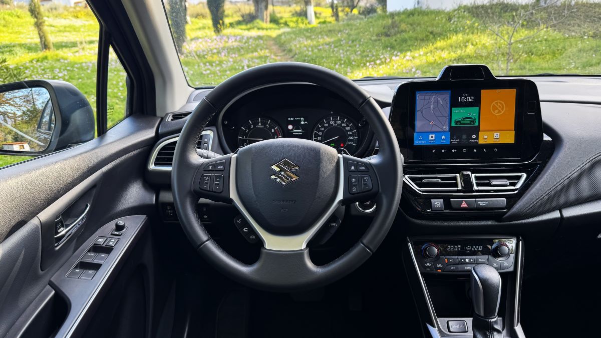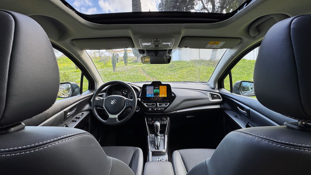 Στο εσωτερικό, το S-Cross ακολουθεί μια απλή και καθαρή φιλοσοφία. Η διάταξη είναι γνώριμη, με έμφαση στην εργονομία. Τα υλικά έχουν σωστή συναρμογή, με μαλακές επιφάνειες σε ταμπλό και πόρτες. Τα καθίσματα συνδυάζουν ύφασμα και δερματίνη, είναι θερμαινόμενα εμπρός και προσφέρουν άνεση σε καθημερινή χρήση. Η θέση οδήγησης είναι εργονομική, με καλή ορατότητα.