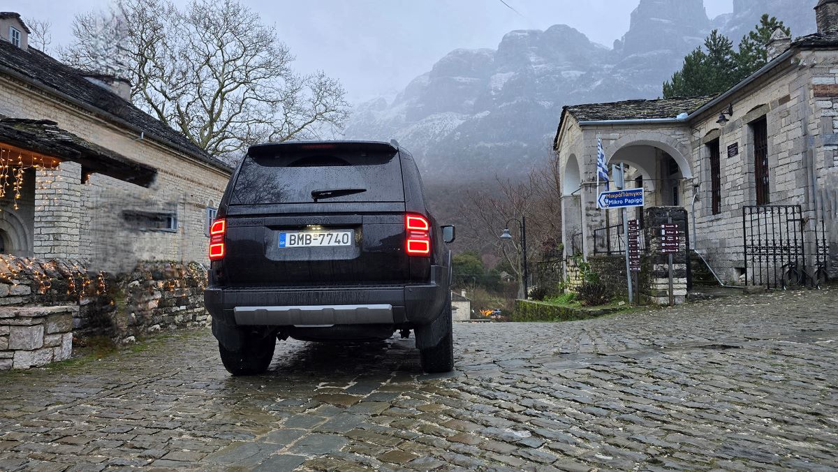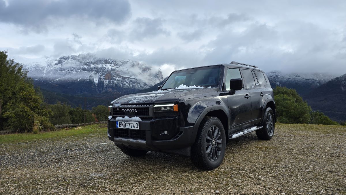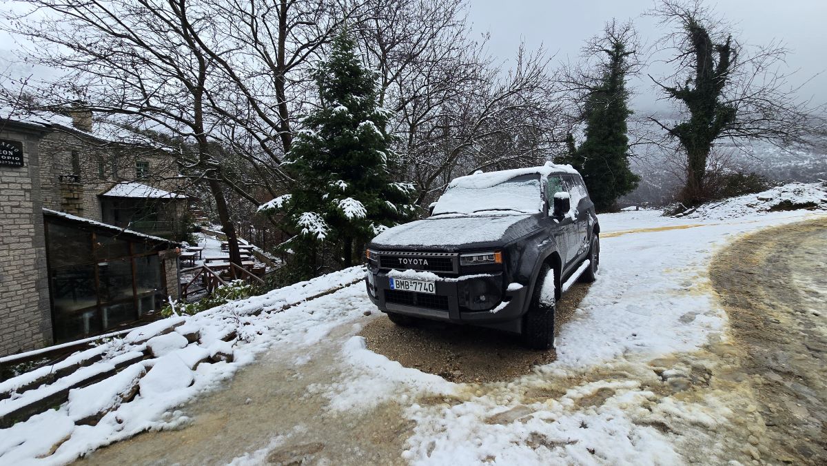 Το νέο Toyota Land Cruiser δεν είναι απλώς η ανανέωση ενός μοντέλου· είναι η επιστροφή στις ρίζες ενός θρύλου που γεννήθηκε πριν από επτά δεκαετίες. Με τον επανασχεδιασμό του, η Toyota κατάφερε να συνδυάσει τη ρετρό νοσταλγία με την τεχνολογία αιχμής, δημιουργώντας ένα όχημα εξίσου ικανό στις παγωμένες πλαγιές της Τύμφης όσο και στους δρόμους της σύγχρονης πόλης. Χρειάστηκε να κατεβούμε από το Μικρό Πάπιγκο, βράδυ με τη θερμοκρασία στους – 2 βαθμούς Κελσίου ενώ το χιόνι έχει στρωθεί στο δρόμο. Παγωμένη κατάβαση, με στροφές 180 μοιρών λοιπόν. Το αυτοκίνητο δοκιμής μας φορούσε κατάλληλα ελαστικά μεικτών συνθηκών 265/65/18. Επιλέγοντας τον υποπολλαπλασιασμό σχέσεων (4Lo) κατεβήκαμε χωρίς φρένο και χωρίς δράμα.