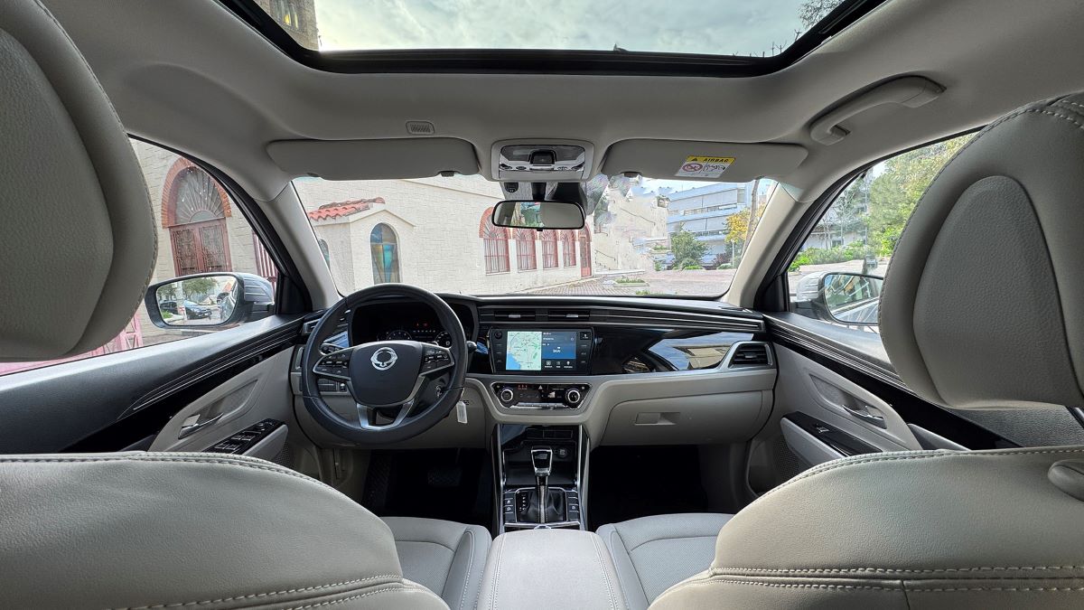 Στο εσωτερικό, το Korando αποδεικνύεται φιλόξενο και φωτεινό. Τα δερμάτινα καθίσματα σε ανοιχτόχρωμη απόχρωση δημιουργούν αίσθηση πολυτέλειας και ευρυχωρίας, ενώ η ανοιγόμενη ηλιοροφή αφήνει το φυσικό φως να πλημμυρίζει την καμπίνα. Η κεντρική οθόνη αφής 9″ με ενσύρματο Apple CarPlay και Android Auto είναι εύχρηστη και ευκρινής, ενώ ο ψηφιακός πίνακας οργάνων 10,3″ προσφέρει όλες τις απαραίτητες πληροφορίες ταξιδιού με σύγχρονη αισθητική.