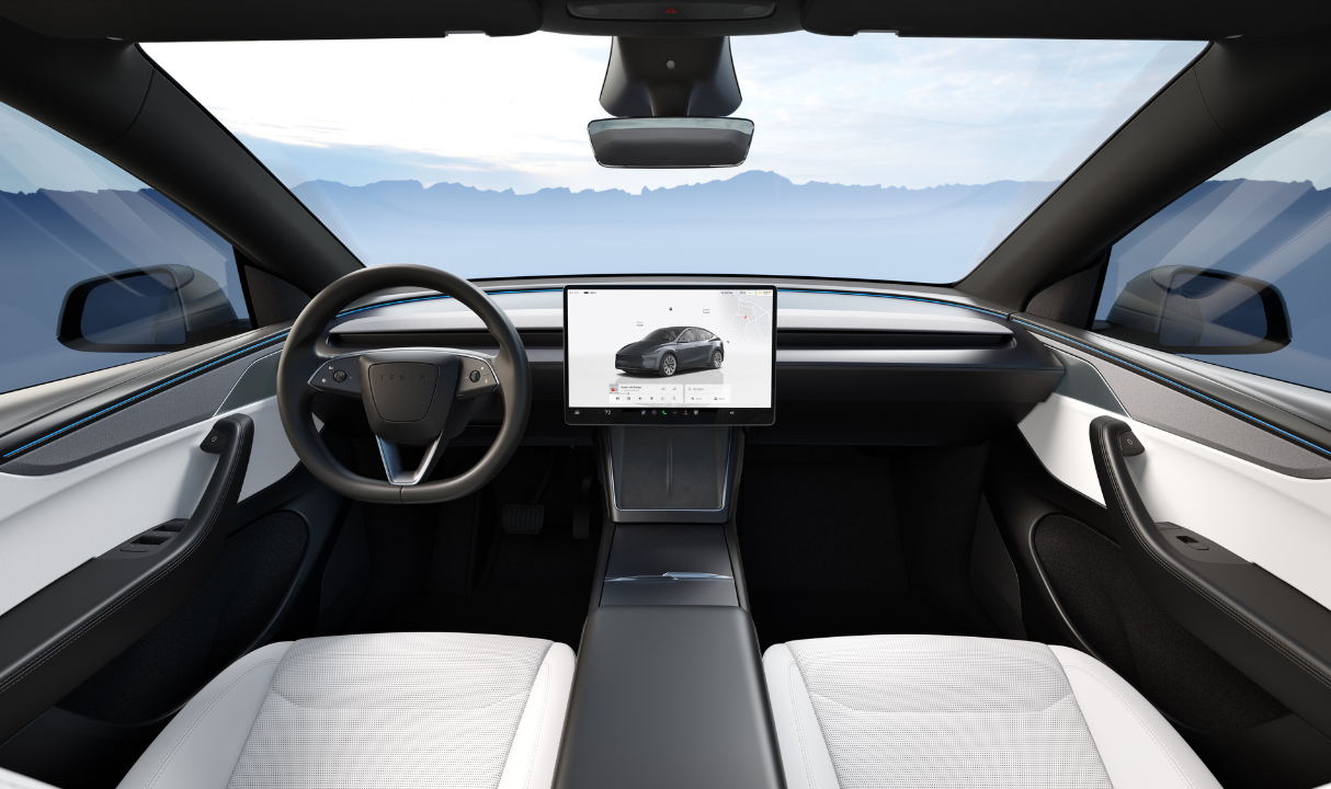 Οι επιβάτες της πρώτης σειράς απολαμβάνουν μια εύχρηστη οθόνη αφής 16”, που λειτουργεί με το χαρακτηριστικό εσωτερικό λογισμικό της Tesla. Τα υψηλής άνεσης αεριζόμενα και θερμαινόμενα μπροστινά καθίσματα διατηρούν την ιδανική θερμοκρασία σε όλες τις συνθήκες, καθώς συγχρονίζονται αυτόματα με τον έλεγχο κλιματισμού.