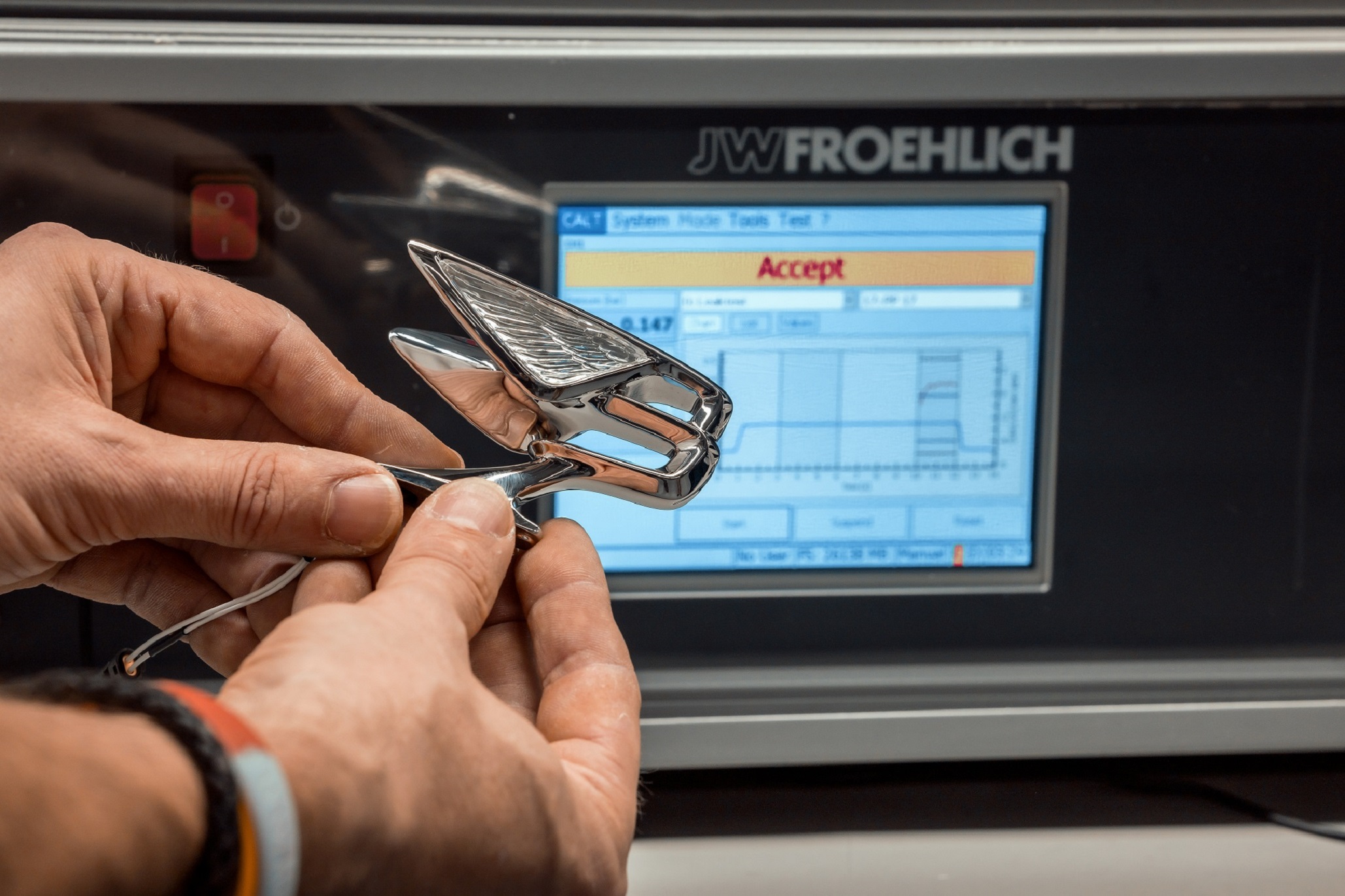 Η όλη διαδικασία διαρκεί 11 εβδομάδες από την αρχή μέχρι το τέλος, οπότε το έμβλημα είναι έτοιμο για συναρμολόγηση από την WCM Europe Ltd, συμπεριλαμβανομένων των κρυστάλλινων ακρυλικών πτερυγίων, της καλωδίωσης και των μικροσκοπικών LED που δημιουργούν ένα τόσο μαγικό αποτέλεσμα στην τελική φάση της λειτουργίας τους πάνω στο αυτοκίνητο.