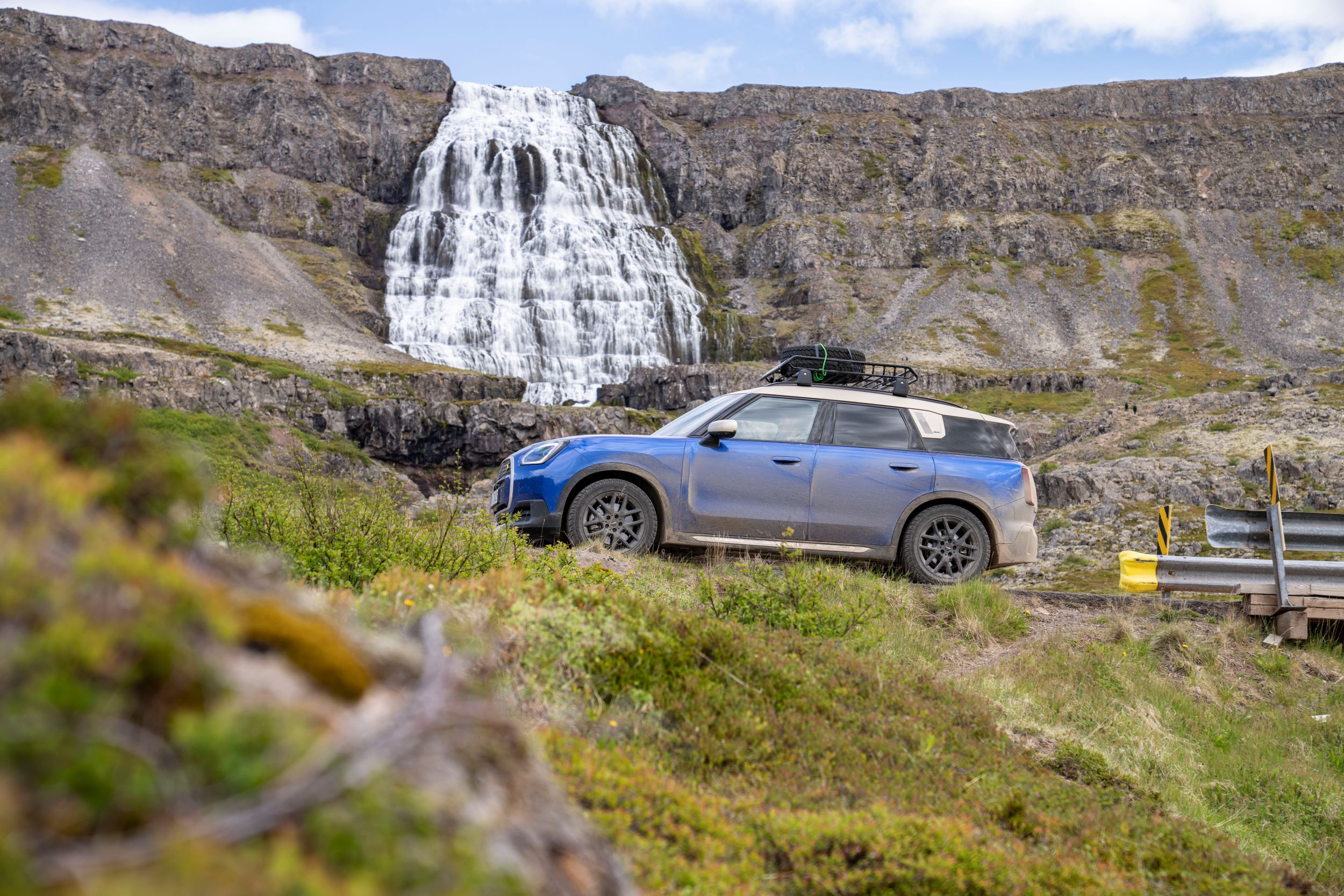 Εκτός από το οδικό δίκτυο της πρωτεύουσας Ρέκιαβικ, ασφαλτοστρωμένοι δρόμοι υπάρχουν κυρίως στην περίφημη κυκλική διαδρομή, γνωστή ως Ring Road, που αποτελεί την πιο δημοφιλή επιλογή για την εξερεύνηση του νησιού. Το MINI Countryman SE ALL4 αποδεικνύεται πολύ πιο ανθεκτικό από όσο φημίζεται το οικογενειακό SUV όταν φεύγει από το Μόναχο: ελαστικά εκτός δρόμου, σχάρα οροφής με ρεζέρβα, προστατευτικές ποδιές, φτυάρι και γρύλος είναι όλα μέρος του πρακτικού πακέτου εξοπλισμού, για να απολαύσει κάποιος αξιοθέατα όπως καταρράκτες, θερμοπίδακες και φιόρδ.