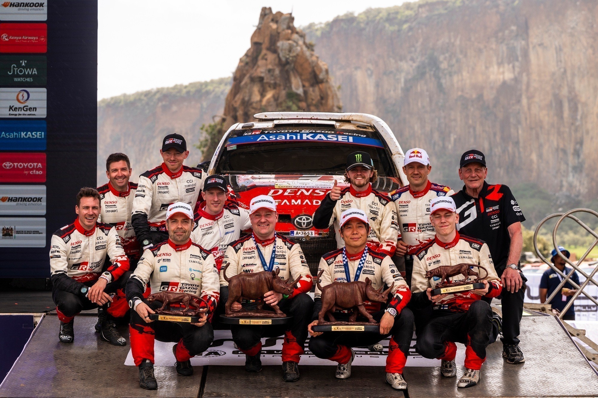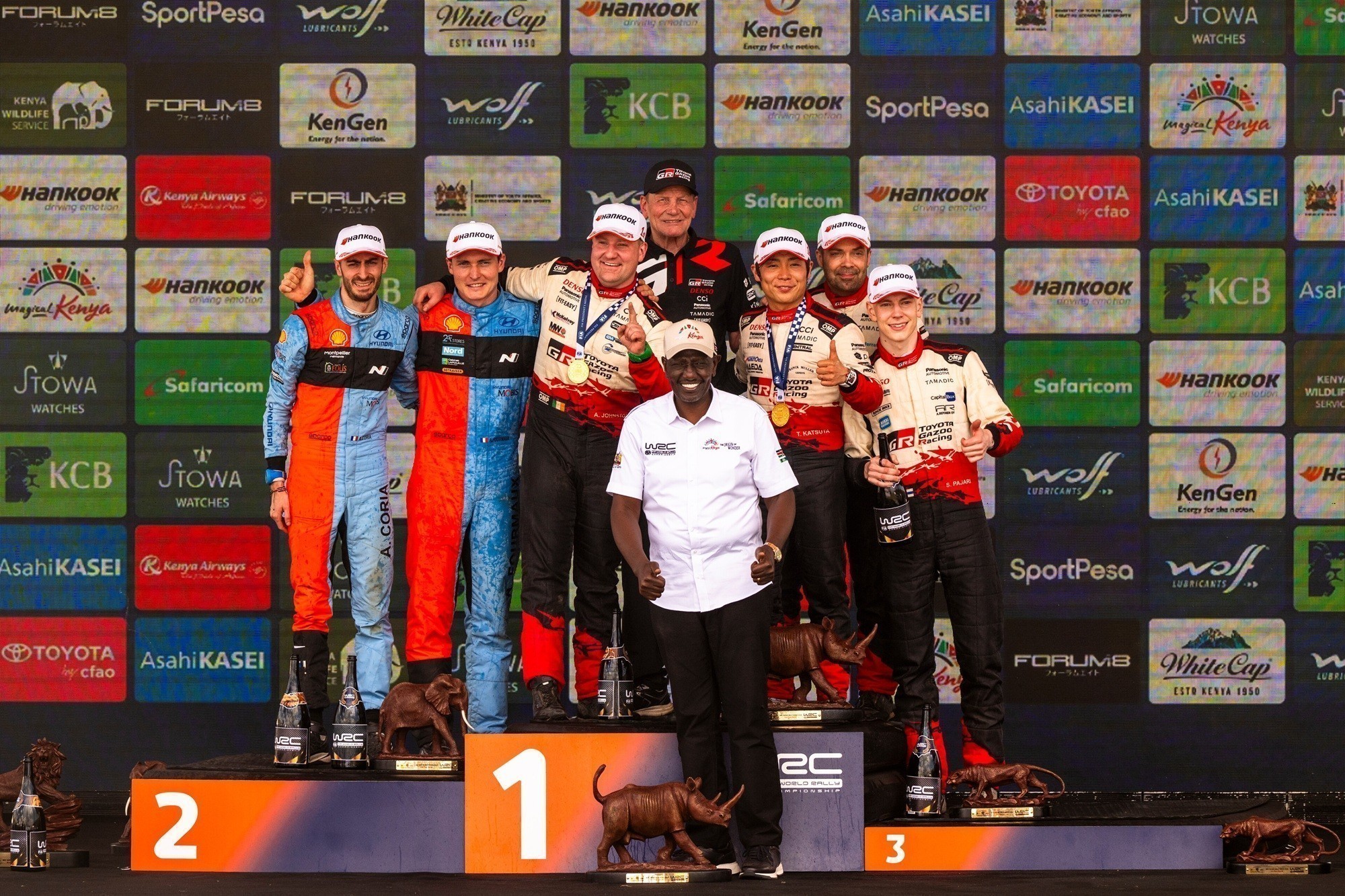 Μεταξύ των παρευρισκόμενων για να γίνουν μάρτυρες της ιστορικής στιγμής ήταν ο Πρόεδρος της Κένυας Γουίλιαμ Ρούτο, ο οποίος παρέδωσε προσωπικά στον Τακαμότο Κατσούτα το τρόπαιο του νικητή στον τερματισμό. Ο Αντριέν Φουρμό πραγματοποίησε μια ψύχραιμη οδήγηση για να εξασφαλίσει τη δεύτερη θέση γενικής και να διεκδικήσει το 10ο βάθρο της καριέρας του στο WRC. Ο Γάλλος και οι ομόσταβλοί του στη Hyundai Motorsport πάλεψαν με σοβαρά προβλήματα υπερθέρμανσης καθ’ όλη τη διάρκεια του Σαββατοκύριακου.