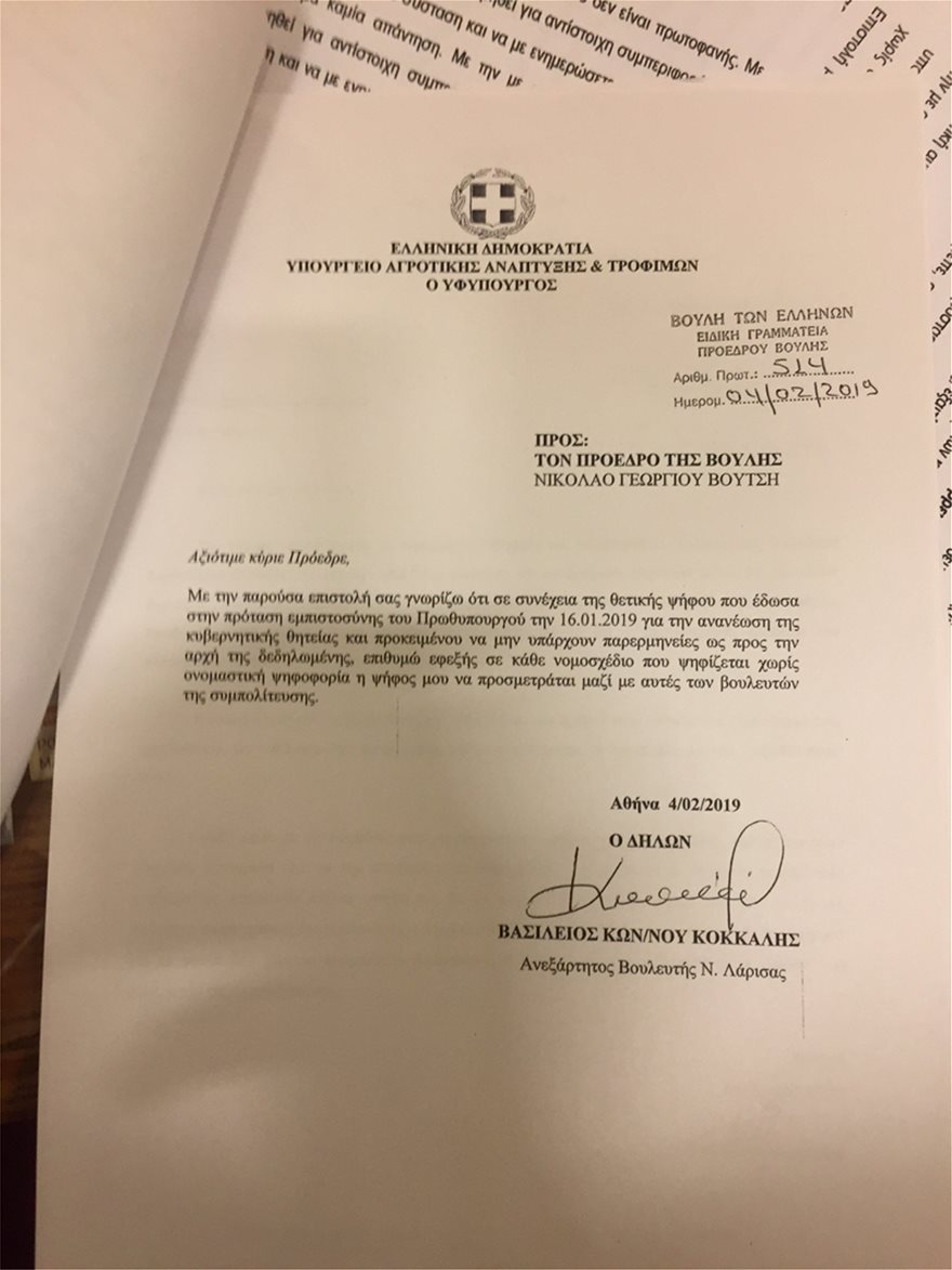 Με αίτημα τους οι 6 «πρόθυμοι» βουλευτές που έδωσαν ψήφο εμπιστοσύνης, ζητούν η ψήφος τους να προσμετράται στην κοινοβουλευτική πλειοψηφία. Πρόκειται για τους Ελενα Κουντουρά, Β. Κόκκαλη, Αικατερίνη Παπακώστα, Αθ. Παπαχριστόπουλο και Σπ. Δανέλλη και Κ. Ζουράρι.