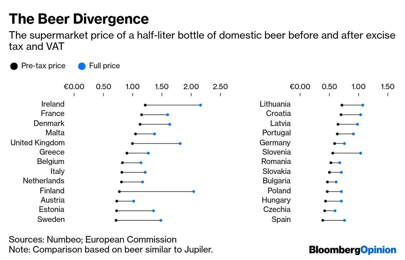 Υπάρχουν τρεις προφανείς λόγοι για τους οποίους οι τιμές μπύρας μπορεί να διαφέρουν μεταξύ των ευρωπαϊκών χωρών.