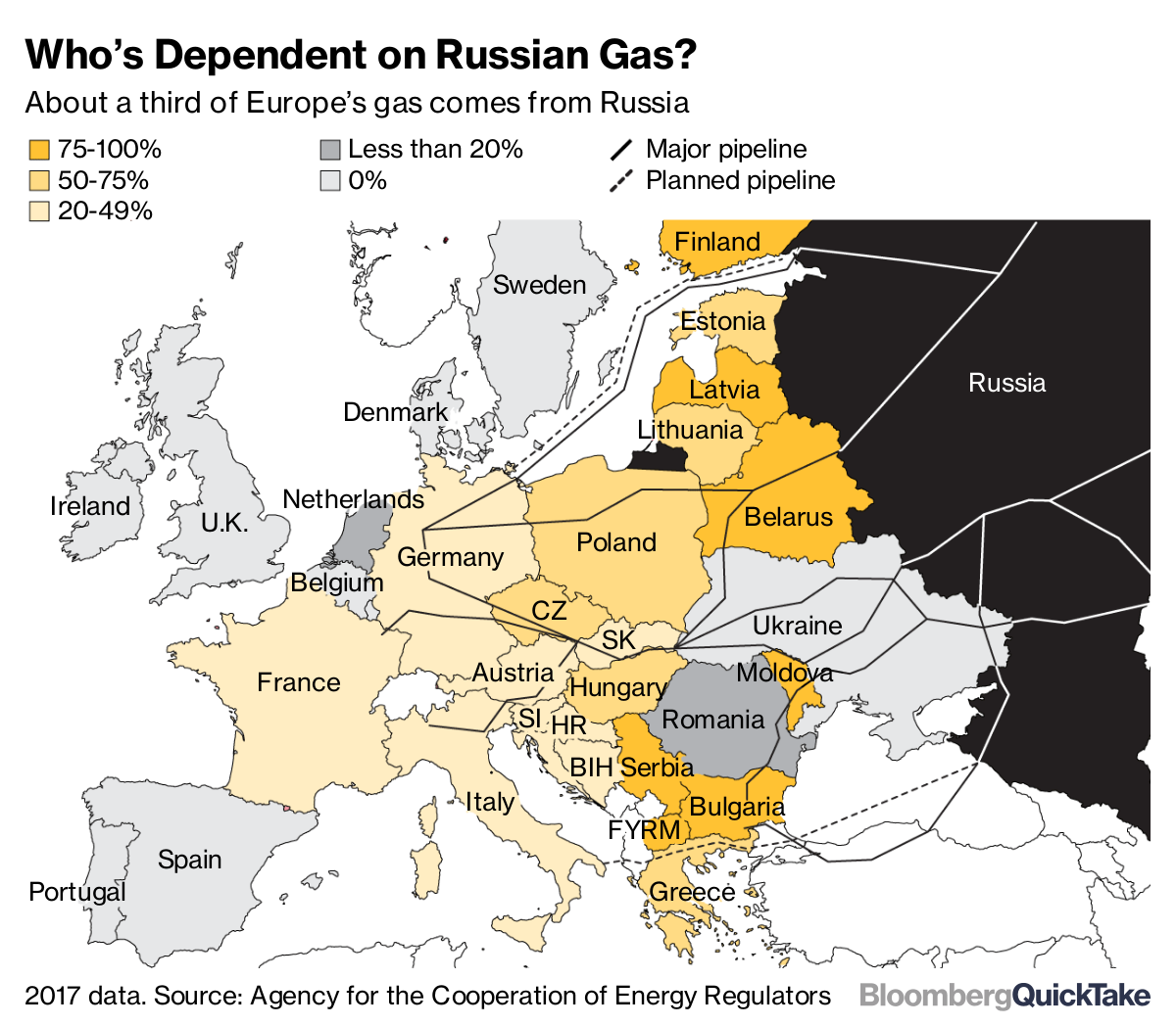 Η Ελλάδα είναι απομονωμένη από το κύριο δίκτυο φυσικού αερίου της Ευρώπης και λαμβάνει το μεγαλύτερο μέρος των προμηθειών της μέσω ενός αγωγού από τη Ρωσία που διασχίζει τη Βουλγαρία, καθώς και μέσω κάποιων LNG, κυρίως από την Αλγερία με σύμβαση με τη ΔΕΠΑ που λήγει το 2021.