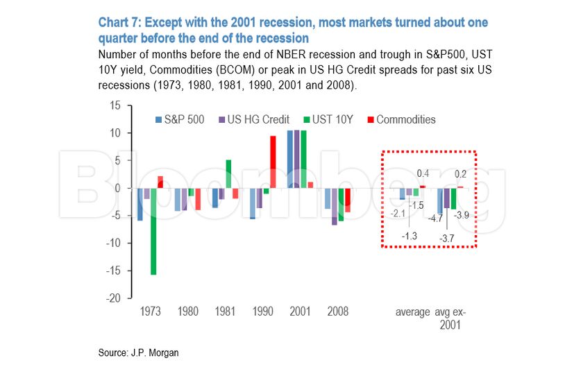 “Η καλύτερη χρονική στιγμή για επανατοποθετήσεις στις φθηνές αγορές είναι είτε ένα τρίμηνο πριν η βουτιά της ανάπτυξης περιοριστεί, για όσους έχουν εμπιστοσύνη στις προβλέψεις για τον κύκλο εργασιών των εταιρειών, είτε όταν οι αποτιμήσεις φτάσουν στα άκρα, για όσους δεν λαμβάνουν υπόψη τους θεμελιώδεις καταλύτες”, εκτίμησε ο Normand. “Και στις δύο περιπτώσεις είναι η κατάλληλη περίοδος για επανατοποθετήσεις στις αγορές”.