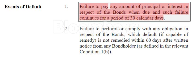 Σύμφωνα με το Bloomberg τους τελευταίους μήνες η Ρωσία έβρισκε τρόπους διαφυγής από τις κυρώσεις που της επιβλήθηκαν μετά την εισβολή της στην Ουκρανία. Ωστόσο, το βράδυ της Κυριακής, έληξε η περίοδος χάριτος διάρκειας 30 ημερών για πληρωμές τόκων περίπου 100 εκατ. δολαρίων που έπρεπε να έχει πληρώσει στις 27 Μαΐου, μια προθεσμία που θεωρείται γεγονός αθέτησης υποχρεώσεων εφόσον χαθεί (default).