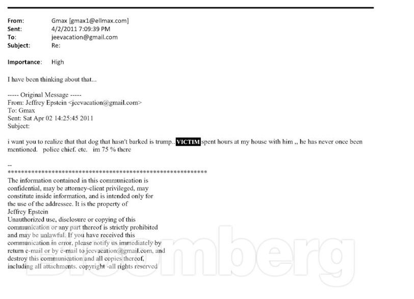 «Θέλω να συνειδητοποιήσεις ότι ο σκύλος που δεν γάβγισε είναι ο Τραμπ», έγραψε ο Έπσταϊν σε ένα email του 2011, χωρίς να διευκρινίζει αν αναφερόταν στον μελλοντικό πρόεδρο. Συνέχισε λέγοντας ότι ένα από τα θύματα είχε «περάσει ώρες στο σπίτι μου μαζί του» και ότι «ποτέ δεν έχει αναφερθεί», χωρίς ωστόσο να κατονομάζει ευθέως σε ποιον αναφερόταν.