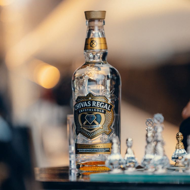 Η Chivas Regal παρουσιάζει το πιο ρηξικέλευθο δημιούργημά της: το Crystalgold, ένα κρυστάλλινο, διάφανο ποτό που προέρχεται από παλαιωμένο σκωτσέζικο ουίσκι, αλλά απογυμνώνεται από το χρυσό του χρώμα, μέσα από μια καινοτόμα διαδικασία φιλτραρίσματος.