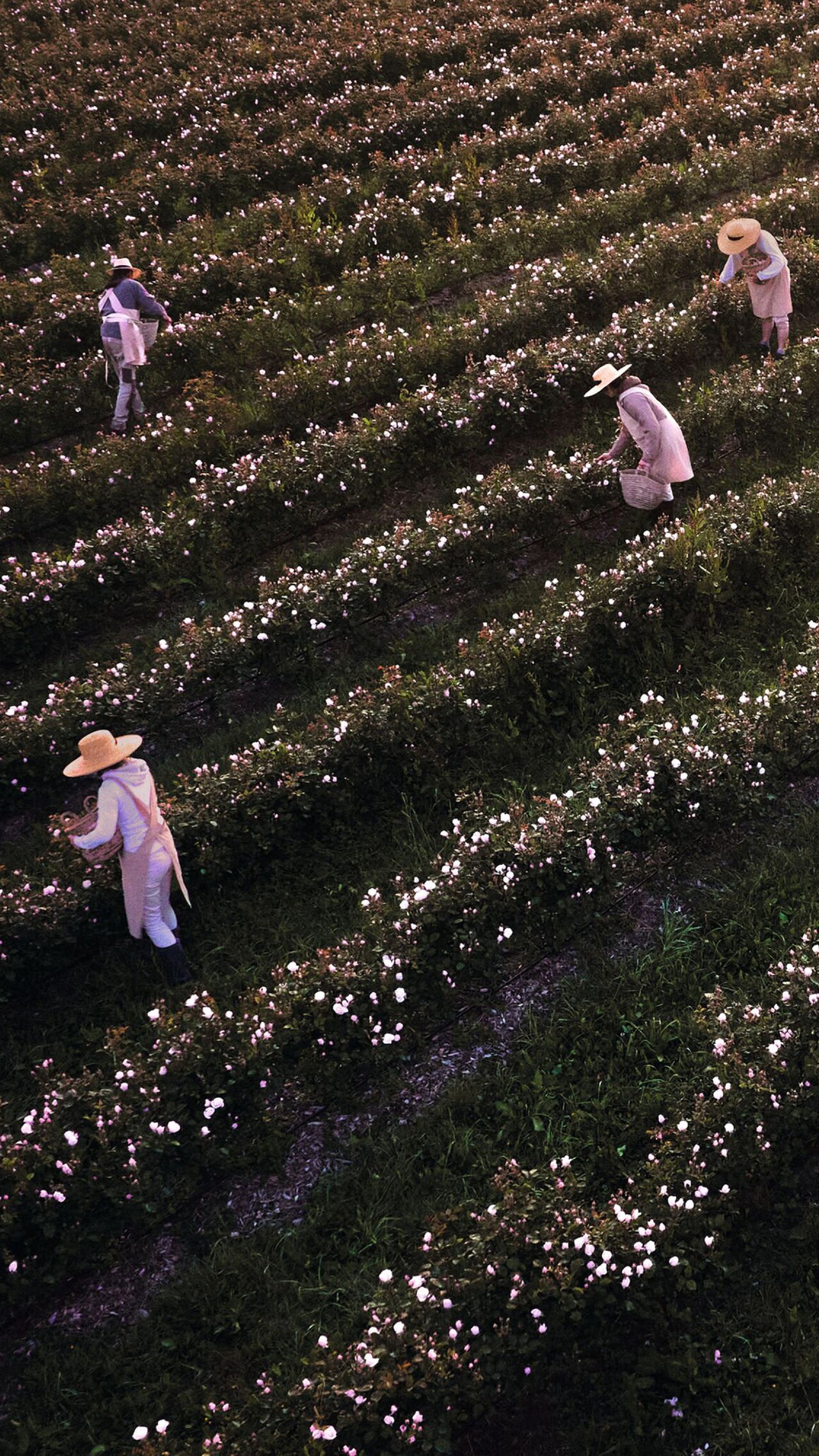 Υπό το απαλό φως των φαναριών, τα τριαντάφυλλα τοποθετούνται σε ποδιές και καλάθια και στη συνέχεια σε σακιά από λινάτσα. Έπειτα ζυγίζονται και μεταφέρονται για την εξαγωγή ελαίου, ώστε να συλλεχθεί το λεπτό άρωμά τους και τα πολύτιμα συστατικά των πετάλων. Έτσι προστίθενται σε αρώματα υψηλής ποιότητας και καλλυντικά.