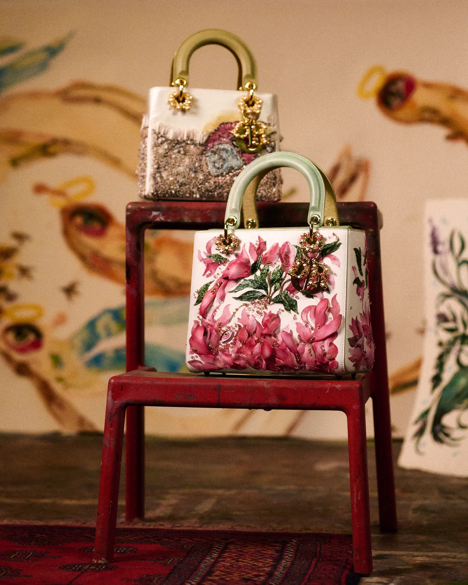 Τσάντες Lady Dior περιορισμένης έκδοσης, σχέδιο με έμπνευση τα λουλούδια της καλλιτέχνη Alymamah Rashed’s – φωτογραφία: Mateusz Stefanowski