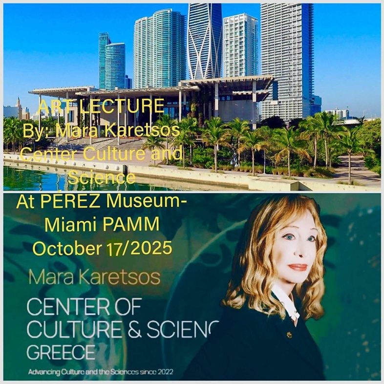Η διεθνής καλλιτέχνης Μάρα Καρέτσος, δίνει αύριο 17 Οκτωβρίου μια διάλεξη στο Μαϊάμι στη Φλόριντα, διάλεξη στο Μουσείο PEREZ με τίτλο «Η Τέχνη Σήμερα».