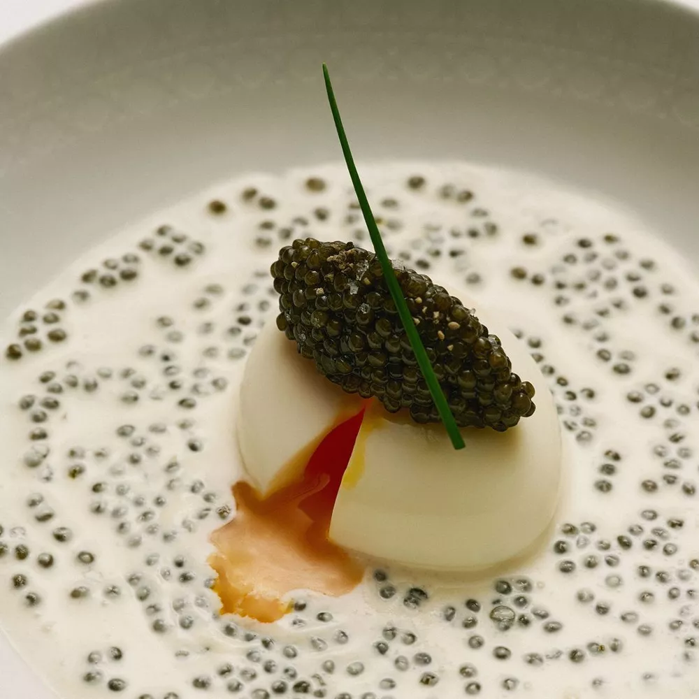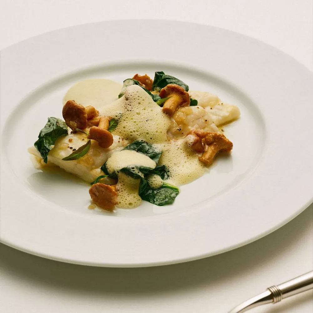 Το λαβράκι “New Look” αντλεί έμπνευση από τη θρυλική σιλουέτα του 1947, το αυγό Christian Dior με ζαμπόν και χαβιάρι ισορροπεί ανάμεσα στην απλότητα και την πολυτέλεια, ενώ η γλώσσα με beurre blanc με οστρακοειδή επανερμηνεύει τη γαλλική παράδοση με σύγχρονη ακρίβεια.