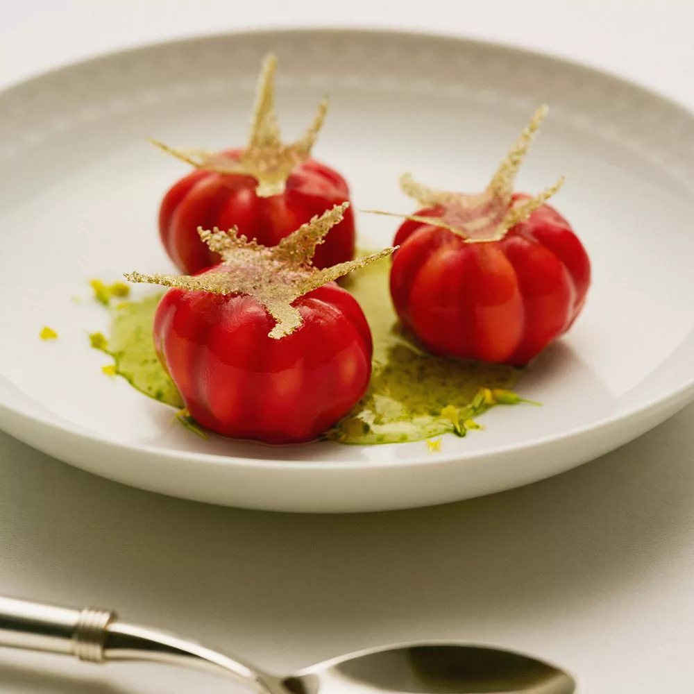 Και κάπως έτσι, στην κουζίνα σήμερα, ο Yannick Alléno, ένας από τους πιο διακεκριμένους σεφ παγκοσμίως με 18 αστέρια Michelin, ανέλαβε να μεταφράσει το λεξιλόγιο της μόδας σε γεύση.