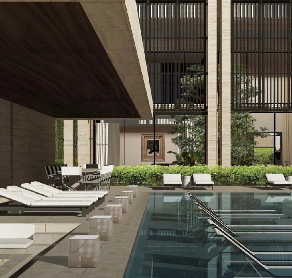 Οι εξωτερικοί χώροι έχουν σχεδιαστεί ως προέκταση της κατοικίας. Λευκές ξαπλώστρες, καθιστικά κήπου και καθαρές επιφάνειες δημιουργούν ένα περιβάλλον φιλοξενίας και χαλάρωσης, όπου η πολυτέλεια εκφράζεται μέσα από την απλότητα, την άνεση και την ποιότητα των υλικών.