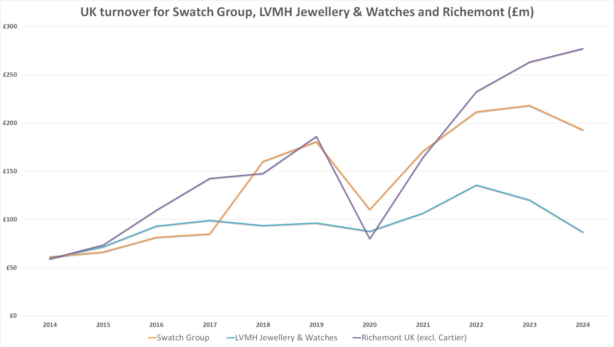 Η απόδοση της Richemont έρχεται σε αντίθεση με τους ανταγωνιστικούς ομίλους προϊόντων πολυτελείας LVMH Jewellery & Watches UK και Swatch Group UK, οι οποίοι σημείωσαν πτώση των πωλήσεων το 2024.