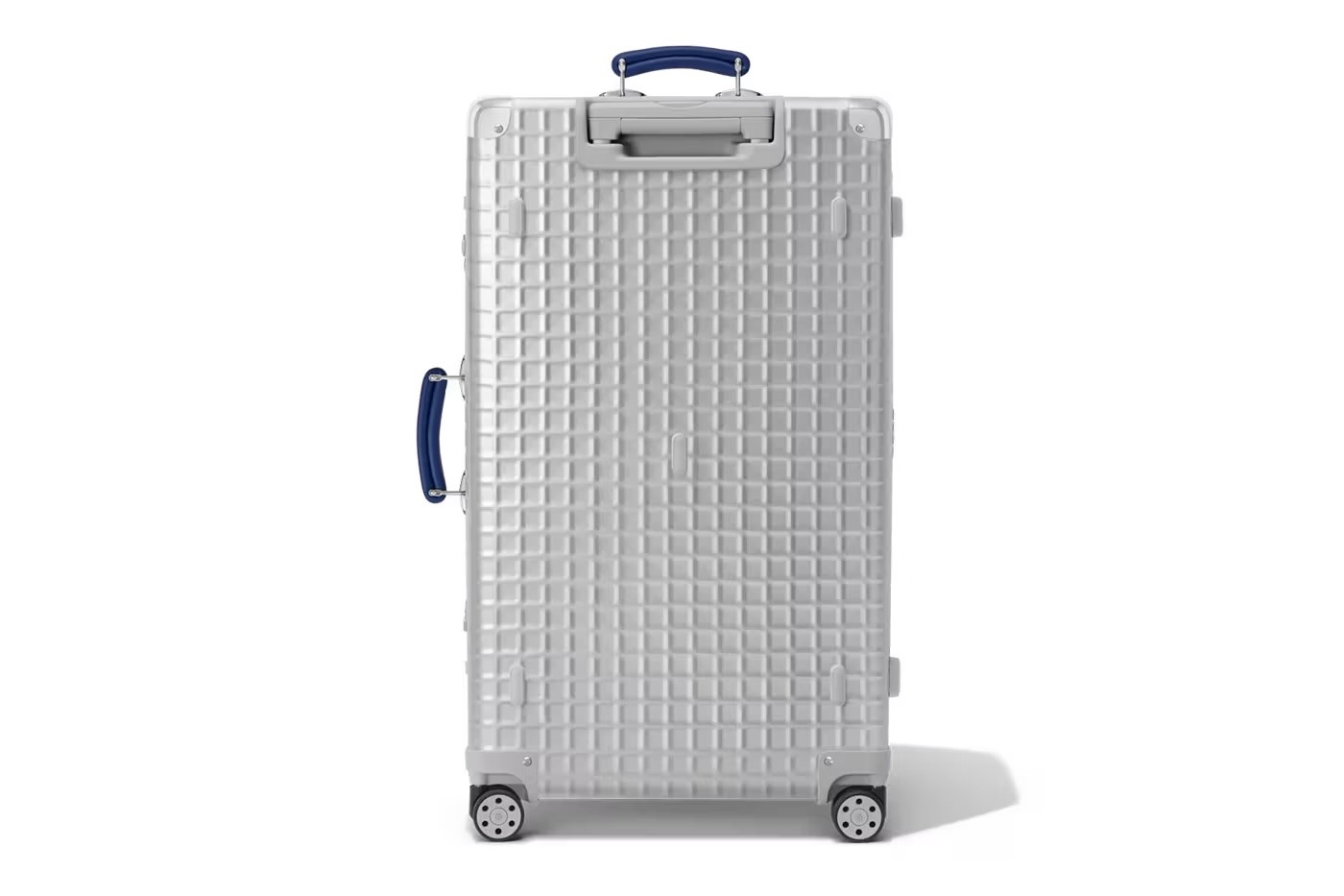 Αντί για τις κάθετες αυλακώσεις που έχουν ταυτιστεί με τη RIMOWA εδώ και δεκαετίες, η νέα σειρά υιοθετεί ένα ανάγλυφο γεωμετρικό grid, μετατρέποντας το γνώριμο αλουμινένιο κέλυφος σε μια επιφάνεια με αυστηρή δομή και έντονη υλικότητα. Δεν πρόκειται για αισθητική παρέκκλιση, αλλά για μια μελετημένη επιστροφή σε μια λιγότερο γνωστή, αλλά εξίσου ουσιαστική στιγμή της σχεδιαστικής της ιστορίας.