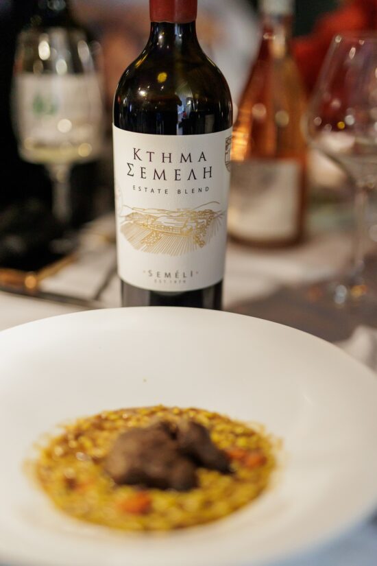 Το δείπνο ολοκληρώνεται με το Seméli ESPERA, ένα φυσικό γλυκό ερυθρό κρασί σπάνιας έντασης και βάθους. Με αρώματα αποξηραμένων φρούτων, σοκολάτας και γλυκών μπαχαρικών, συνοδεύει σοκολατένια επιδόρπια, τάρτες ή εκλεκτά τυριά και αποτελεί ένα δώρο που αφήνει πραγματικά το αποτύπωμά του.