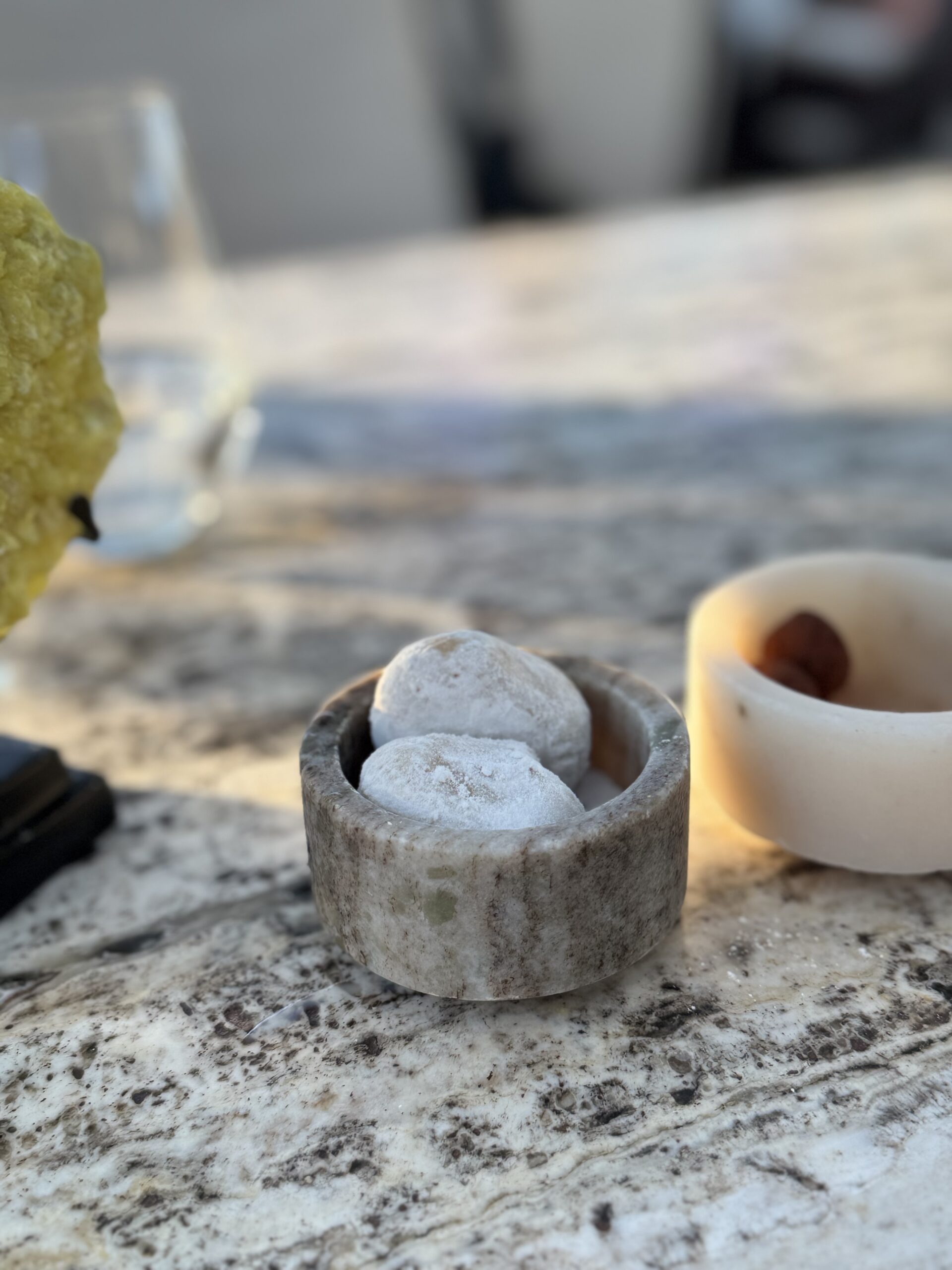 Το κυριακάτικο τραπέζι κλείνει μετά από ώρες συζητήσεων και γαστρονομικών εξερευνήσεων, με έναν καφέ και συνοδευτικά petits fours από αμυγδαλόψιχα και τρούφα που λιώνουν στο στόμα.