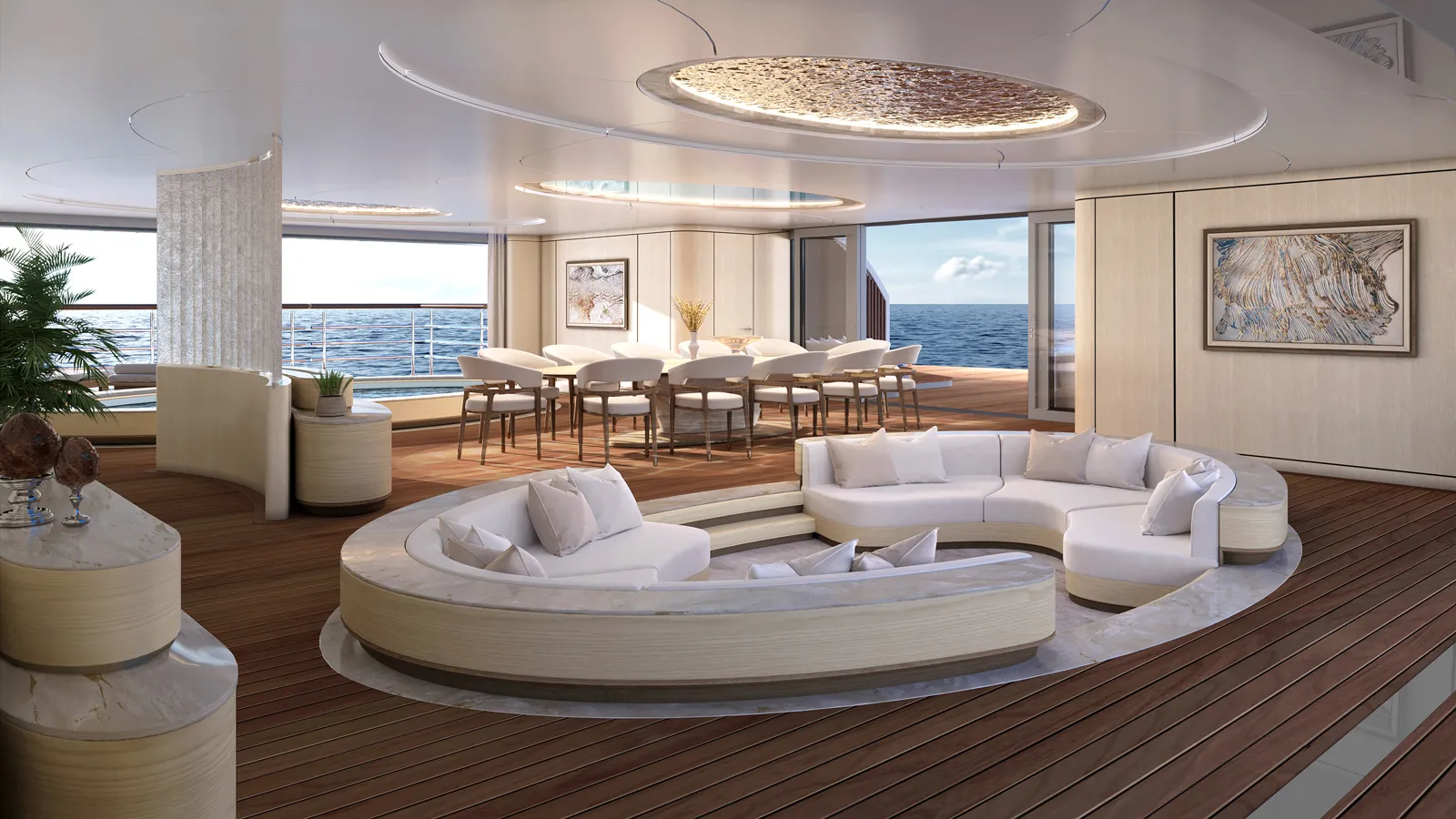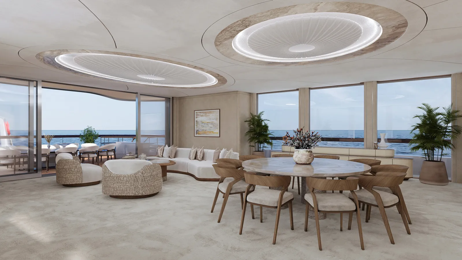 Είναι εμφανές ότι το υπερπολυτελές σκάφος δεν σχεδιάστηκε για να παρατηρεί τη θάλασσα από απόσταση, αλλά για να ενθαρρύνει τη ζωή μέσα σε αυτήν.