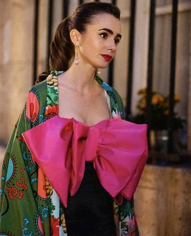 Στη δεύτερη σεζόν, στο πάρτι γενεθλίων της στην αυλή κάτω από το διαμέρισμά της, η πρωταγωνίστρια εμφανίζεται με ένα από τα πολύχρωμα κιμονό του brand. Είναι μια στιγμή χαλαρή, χαρούμενη, σχεδόν ονειρική – σαν να σταμάτησε για λίγο ο χρόνος στο Παρίσι που αποκτά μια δόση ριβιέρας.