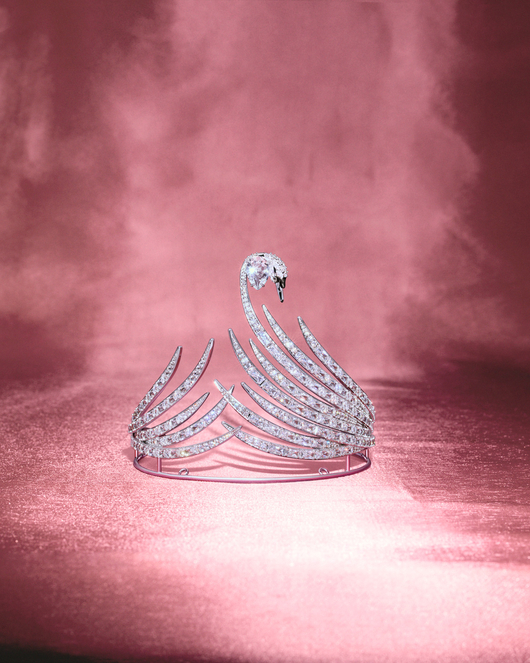 Από το 1956, η αυστριακή εταιρεία Swarovski σχεδιάζει τις τιάρες της επιτροπής έναρξης. Η τιάρα του 2026, σχεδιασμένη από τη Giovanna Engelbert, ήταν διακοσμημένη με περισσότερα από 350 κρύσταλλα και εμπνευσμένη από τον εμβληματικό κύκνο του οίκου. Για δεύτερη συνεχόμενη χρονιά, συμπληρώθηκε από καρφίτσα για τους συνοδούς των ντεμπιτάντ, ενισχύοντας τη συμβολική ενότητα της εμφάνισης.