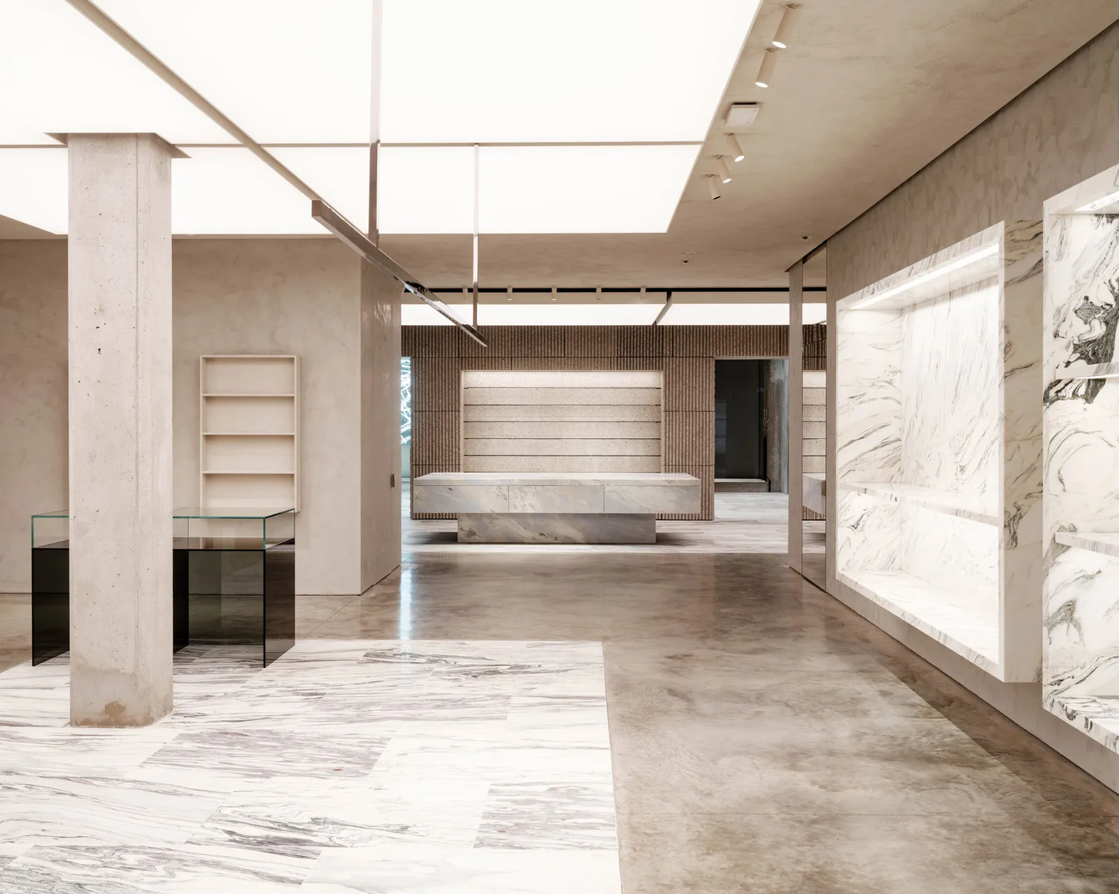 Το αποτέλεσμα είναι μια αρχιτεκτονική ακολουθία που μοιάζει χορογραφημένη. Οι επισκέπτες καλούνται να περιηγηθούν στη μπουτίκ με έναν τρόπο που αντικατοπτρίζει την οπτική γλώσσα του Maison: έντονη, σκόπιμη και στοχαστική. Σε αυτούς τους χώρους, τα ρούχα γίνονται μέρος του περιβάλλοντος, επηρεάζονται από αυτό και με τη σειρά τους διαμορφώνουν την αισθητηριακή εμπειρία.