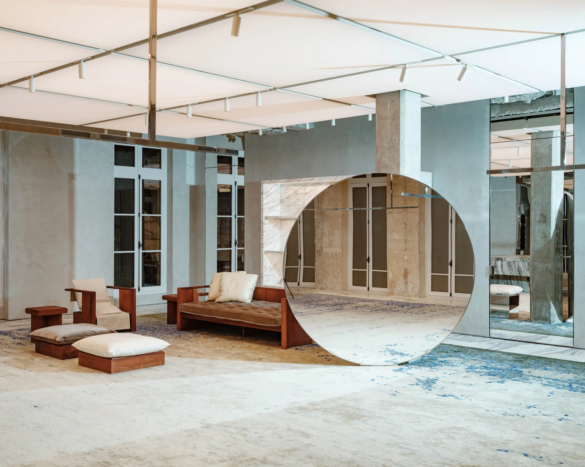 Ένα τραπέζι François-Xavier Lalanne προσθέτει γλυπτική δύναμη, ενώ τα έπιπλα Charlotte Perriand εισάγουν τη σαφήνεια και τον ορθολογισμό που χαρακτήριζαν τη σχεδιαστική της φιλοσοφία. Αυτές οι επιλογές δεν έχουν γίνει μόνο για λόγους αισθητικής συμβατότητας, αλλά και για τον πολιτισμικό τους αντίκτυπο, εδραιώνοντας τη μπουτίκ ως καλλιτεχνικό διάλογο.