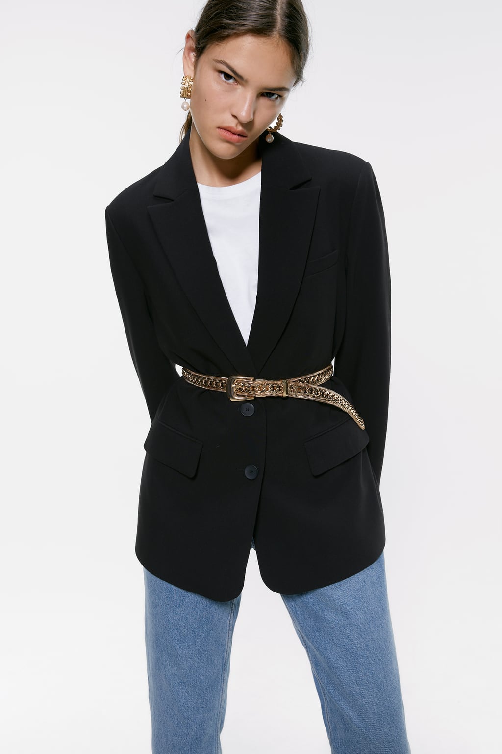 Για να ξεφύγετε λοιπόν από το κλασικό σακάκι–blazer που «καταπίνει» πολλές φορές τη γυναικεία σιλουέτα, προσθέστε μια μεγάλη και ιδιαίτερη ζώνη από πάνω αναδεικνύοντας τόσο την μέση όσο και το στιλ σου.