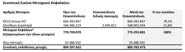 Ως αποτέλεσμα αυτής της επιλογής, τη Δευτέρα 4 Μαΐου 2026 θα εκδοθούν 2.494.811 νέες κοινές μετοχές, οι οποίες θα αρχίσουν να διαπραγματεύονται στην κύρια αγορά του Χρηματιστήριο Αθηνών. Το υπόλοιπο ποσό της ειδικής διανομής θα καταβληθεί κανονικά σε μετρητά στους μετόχους που δεν επέλεξαν την επανεπένδυση.