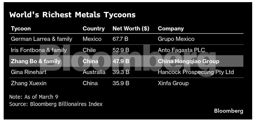 Έκτοτε, η μετοχή του ομίλου China Hongqiao Group έχει ενισχυθεί κατά 585%, μετατρέποντας αθόρυβα τον Ζανγκ στον πλουσιότερο μεγιστάνα μετάλλων της Ασίας με περιουσία περίπου 48 δισεκατομμυρίων δολαρίων.