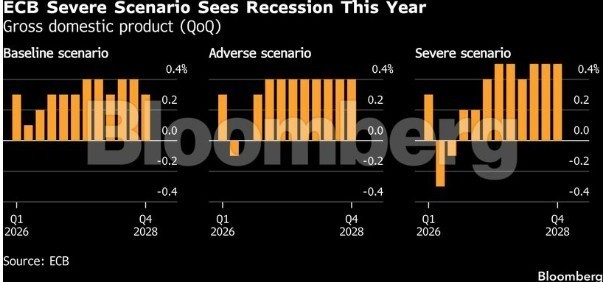 Σύμφωνα με υπολογισμούς της ΕΚΤ, μια παρατεταμένη διακοπή θα ωθήσει τον πληθωρισμό της Ευρωζώνης στο 6,3% και θα προκαλούσε μια σύντομη ύφεση.