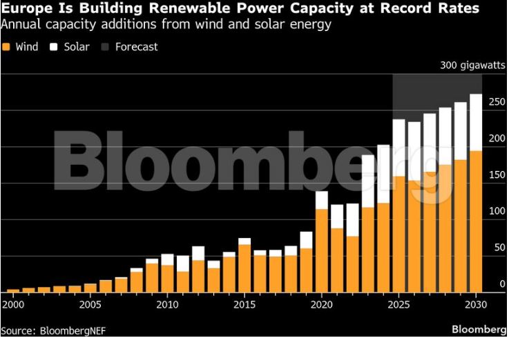 Σύμφωνα με το Bloomberg, oι αρνητικές τιμές ηλεκτρικής ενέργειας υπογραμμίζουν το πόσο η ταχεία ανάπτυξη της παραγωγής ενέργειας από ΑΠΕ, συγκρούεται με τη στάσιμη ζήτηση και τους επίμονους περιορισμούς του δικτύου στην Ευρώπη.