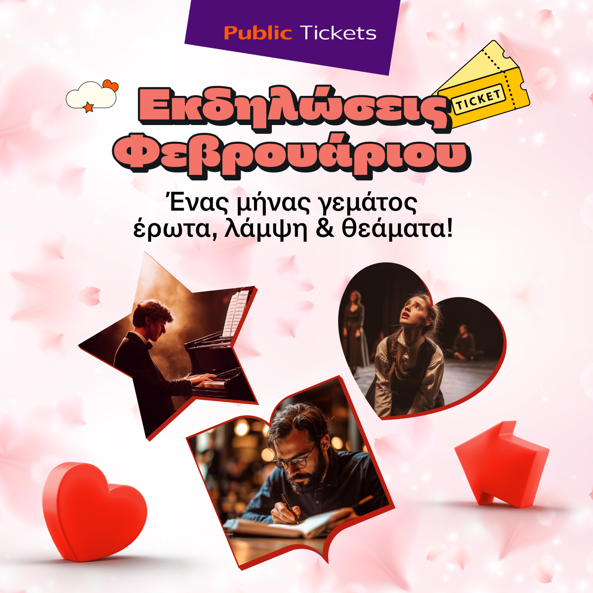 Στα Public και το Τickets.public.gr τον Νούμερο 1 προορισμό για εισιτήρια θεαμάτων βρίσκεις τις πιο απίθανες και πολυαναμενόμενες εκδηλώσεις του μήνα. Όποιο θέαμα και αν θες να απολαύσεις, θέατρο ή συναυλία, για μικρούς και μεγάλους σε όλη την Ελλάδα, απόκτησε το εισιτήριό σου στα Public και ζήσε αξέχαστες εμπειρίες.
