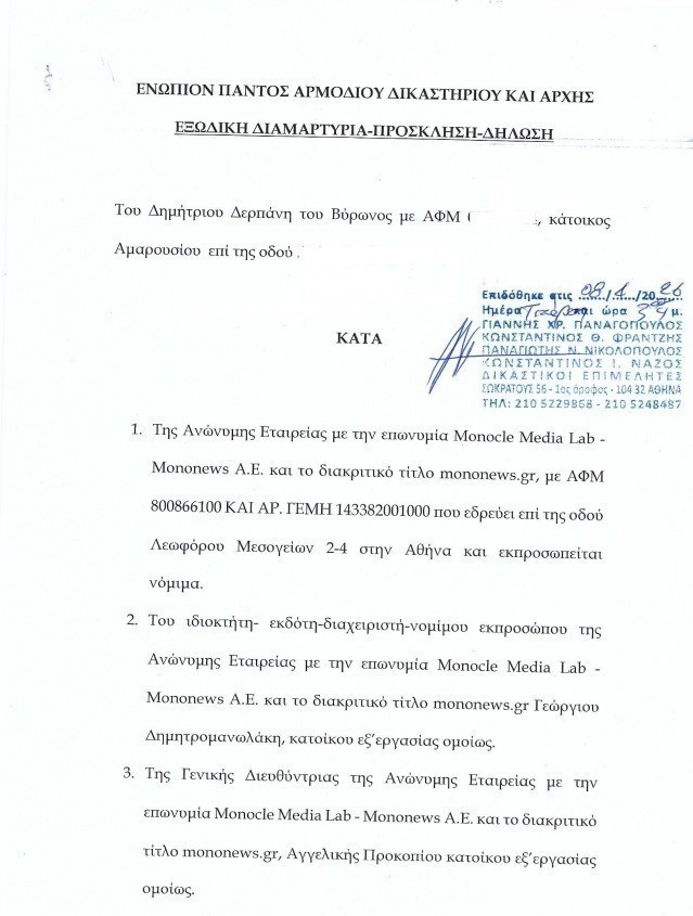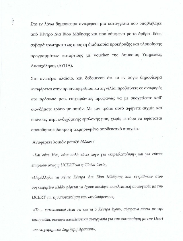 Μετά την εξώδικη διαμαρτυρία των θιγομένων (το εξώδικο του επιχειρηματία Δημήτρη Δρεπάνη καθώς και αυτό της εταιρείας UCERT) τηρώντας τη αρχές της ελευθεροτυπίας ερευνήσαμε περαιτέρω την υπόθεση σκοπεύοντας να αποκαλύψουμε το πρωτότυπο και πρωτοκολλημένο από τις αρχές, έγγραφο, πλην όμως αυτό δεν κατέστη δυνατό.