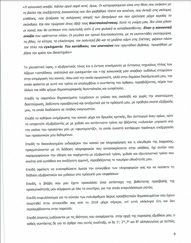 Διαβάστε εδώ ολόκληρο το εξώδικο του κ. Τζώρτζη Κουτσολιούτσου προς το mononews.gr