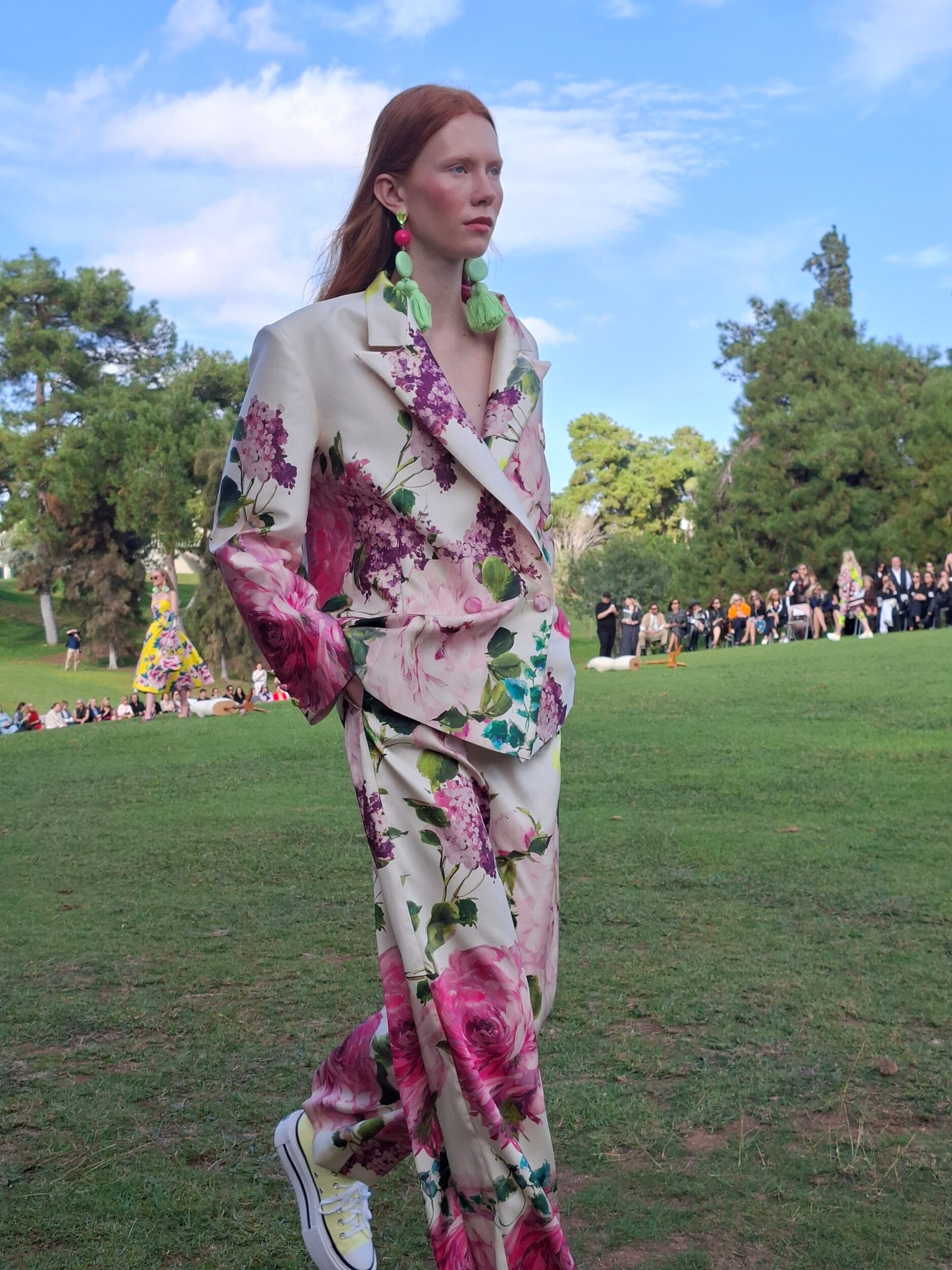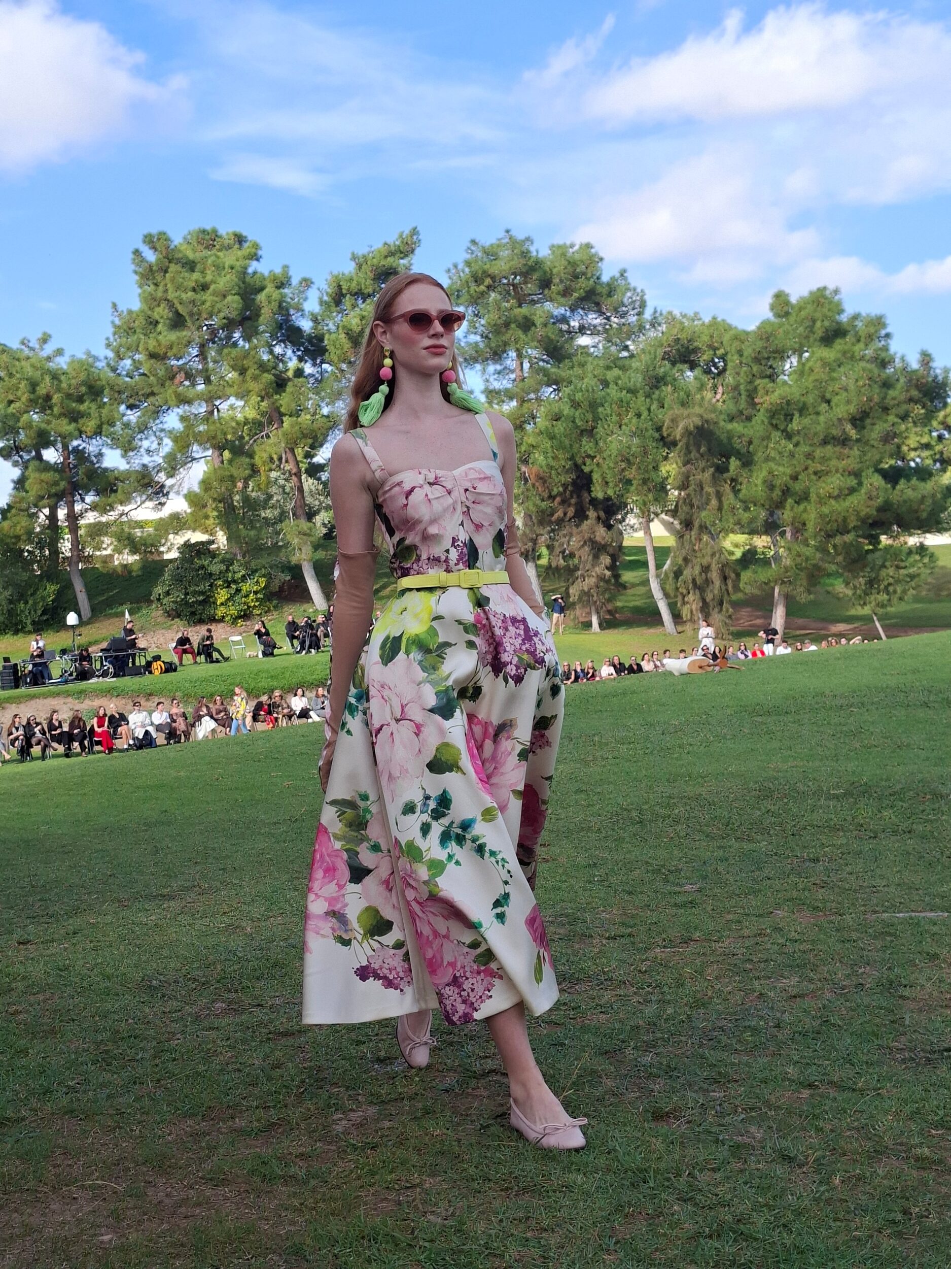 Με ένα εξαίσιο swing ο επαγγελματίας γκολφέρ, έδωσε το σήμα για να ξεκινήσει η επίδειξη με τα 75 κορίτσια του σώου, να διασχίζουν τους απέραντους καταπράσινους χώρους του γηπέδου του Γκόλφ φορώντας μονόχρωμες, πολύχρωμες, ριγέ, εμπριμέ, λουλουδάτες, πουαντιγιέ δημιουργίες για κάθε περίσταση, ακόμα και μαγιώ είδαμε στην πασαρέλα.