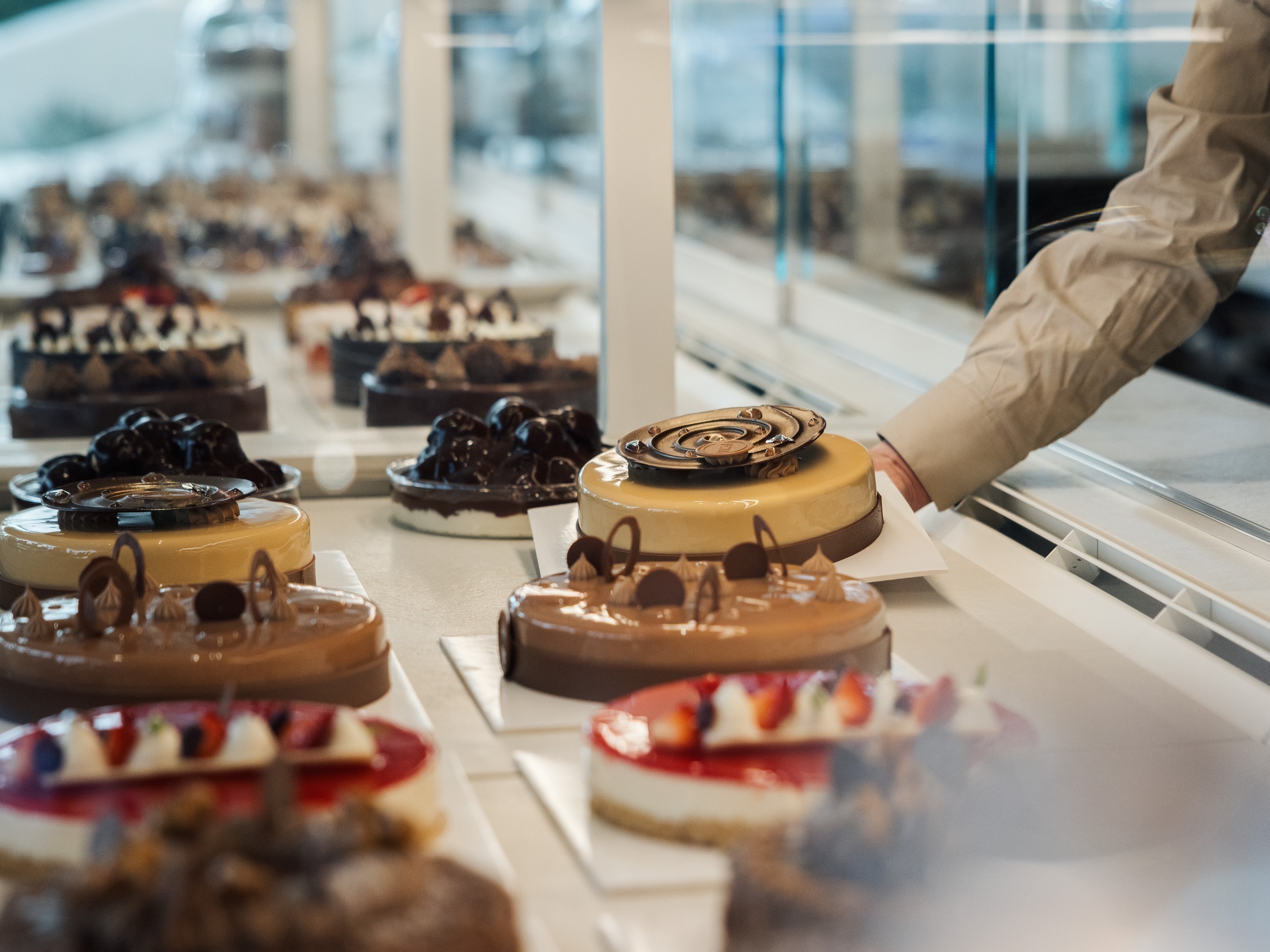 Ο χώρος του καταστήματος αποπνέει σύγχρονη κομψότητα. Ο μίνιμαλ σχεδιασμός, με ζεστούς τόνους ξύλου, λευκές μαρμάρινες επιφάνειες και διακριτικό φωτισμό, δημιουργεί ένα φιλόξενο περιβάλλον που θυμίζει μοντέρνες ευρωπαϊκές boulangeries.