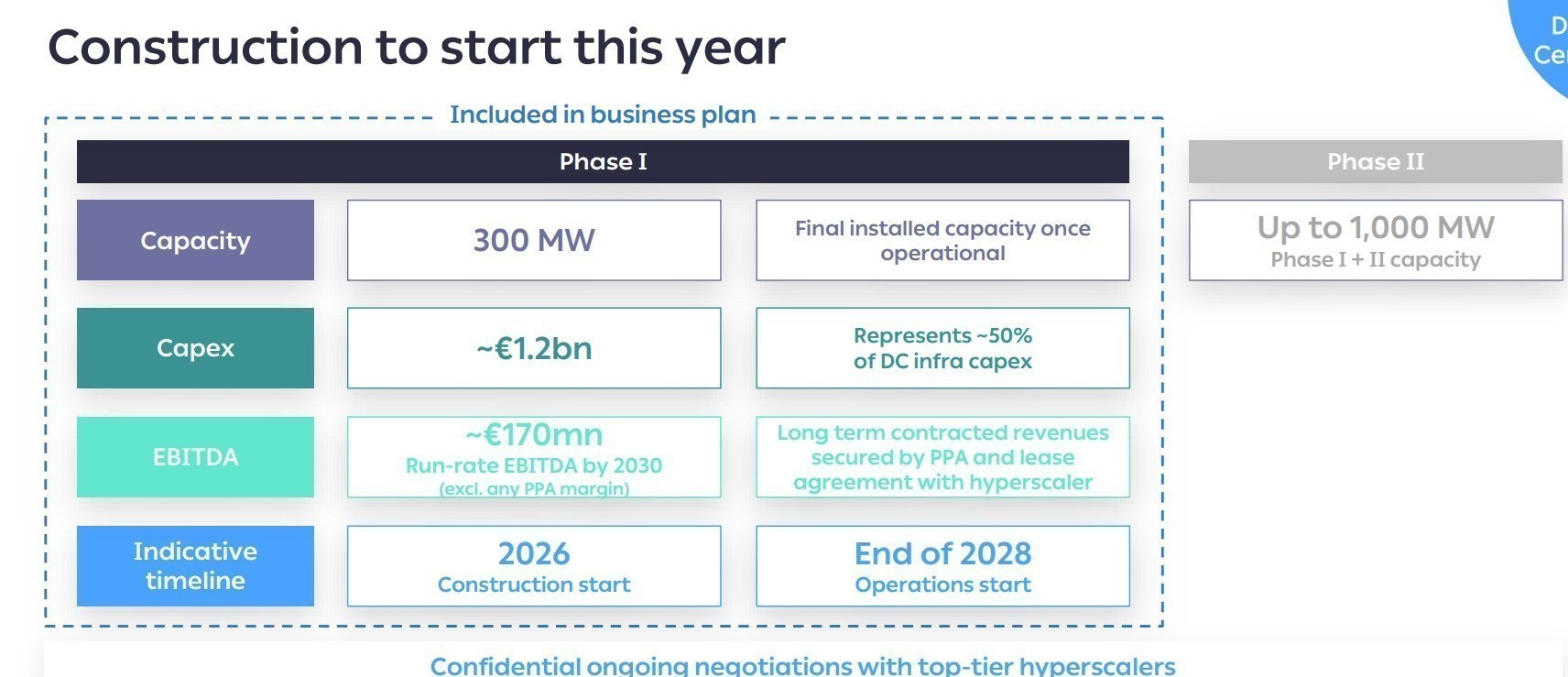 Ειδικότερα, όπως είπε ο Γιώργος Στάσσης, ξεκινά άμεσα την κατασκευή data center 300 MW που θα ολοκληρωθεί το 2028 και κλιμακωτά μπορεί να φτάσει το 1 GW ή τα 2 GW τα επόμενα χρόνια. Ταυτοχρονα, επεκτείνει την παρουσία της στις υποδομές ενέργειας, σχεδιάζοντας να επεκτείνει την παραγωγική της βάση σε ακόμη 3 χώρες την Πολωνία, την Ουγγαρία και τη Σλοβακία με εξαγορές και να επιταχύνει την ανάπτυξη στις ΑΠΕ.